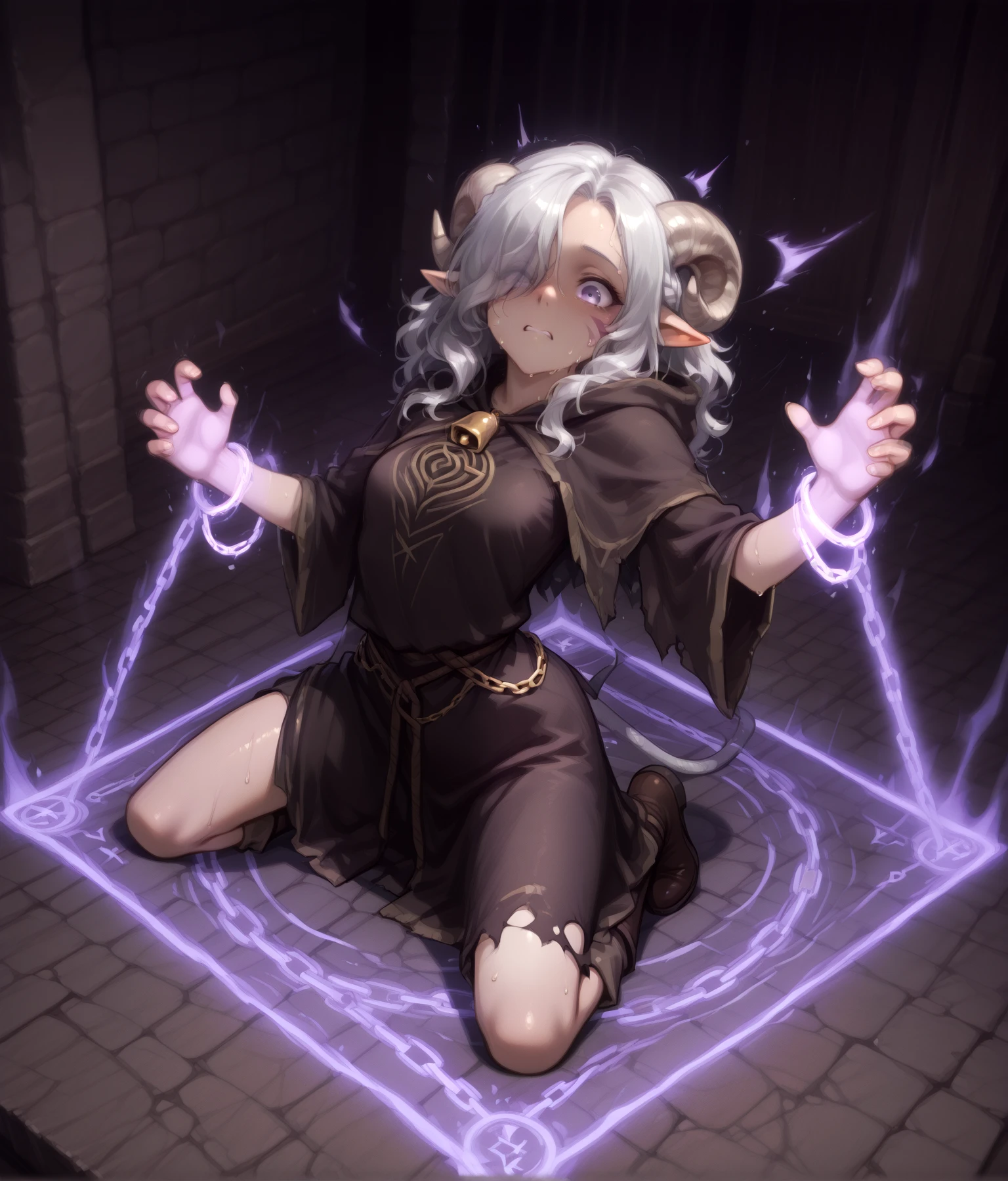 A sinister aura emanates from the conjured barrier, deftly ensnaring wrists and ankles,leaving even the swiftest warrior utterly immobilized.