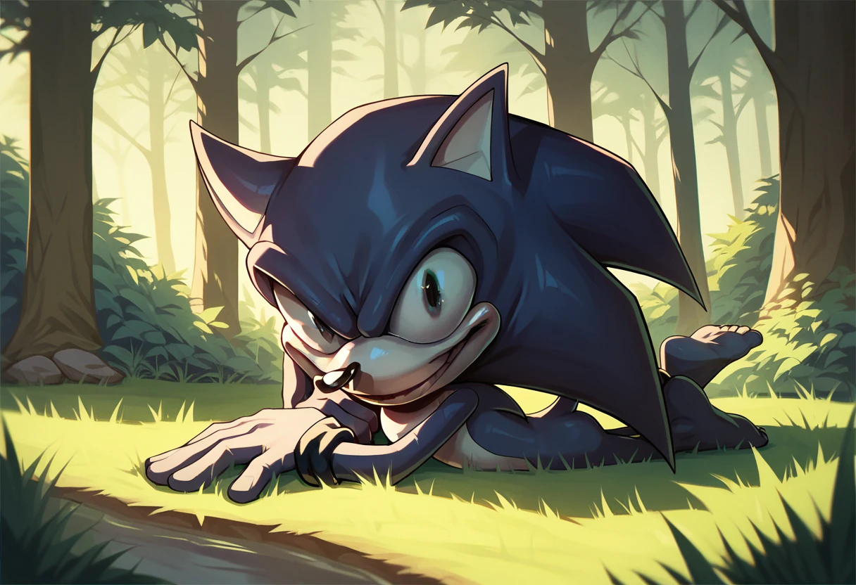 1boy, no humans, 2017x, sonic \(series\), dark blue fur, black eyes, simple eyes, barefootHelpful words: