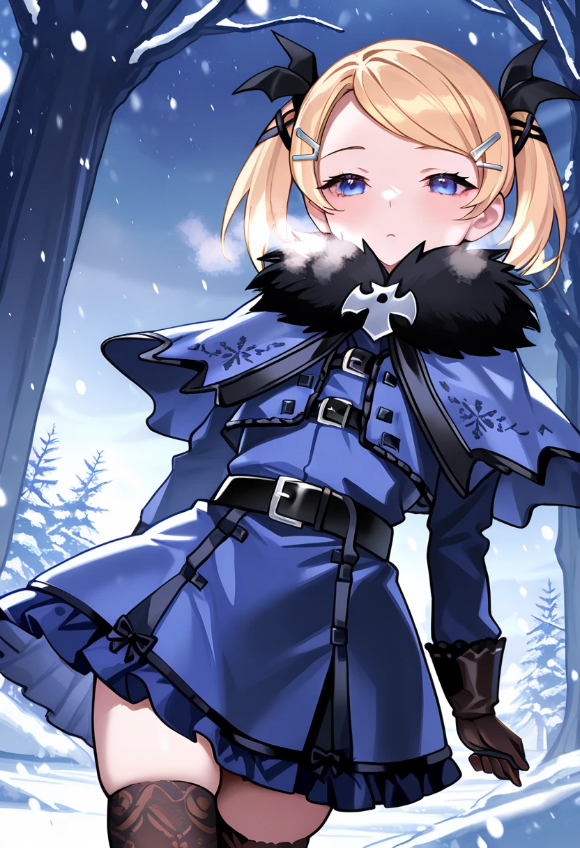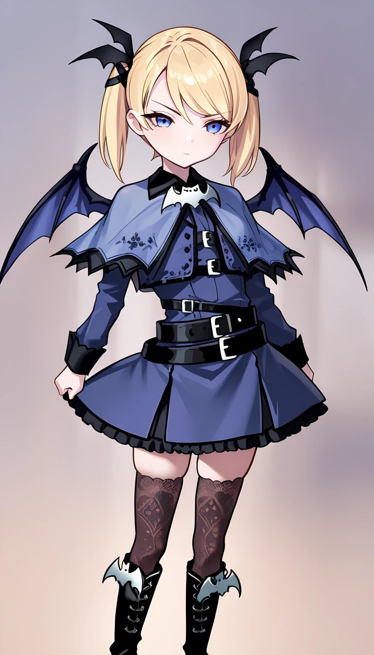 c_casper,blonde hair,blue eyes,twintails,hair ribbon,blue capelet,blue dress,blue skirt,black belt,black thighhighs,black footwear,knee boots,bat wingsc_casper,blonde hair,blue eyes,twintails,hair ribbon,hairclip,black fur collar,black gloves,blue capelet,blue dress,blue skirt,black belt,black thighhighs,black footwear,knee bootsfollett:
