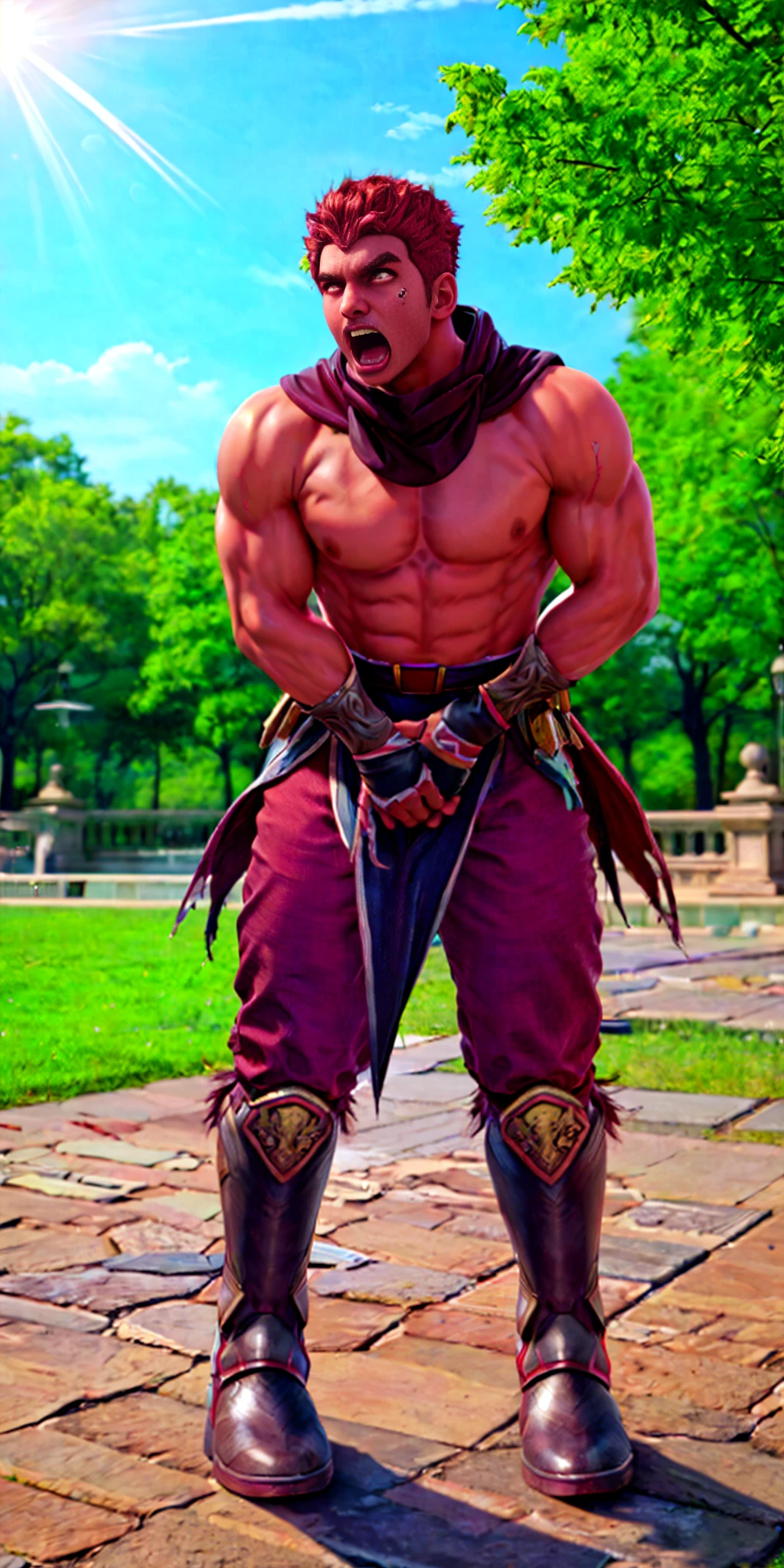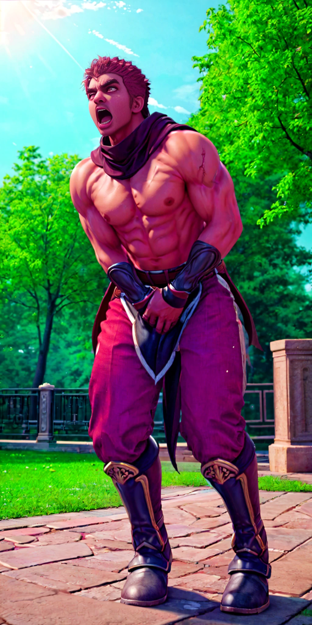 ( yelling, shouting , open eyes, , full body, stand, , hands covering crotch, ) (crotch pain)