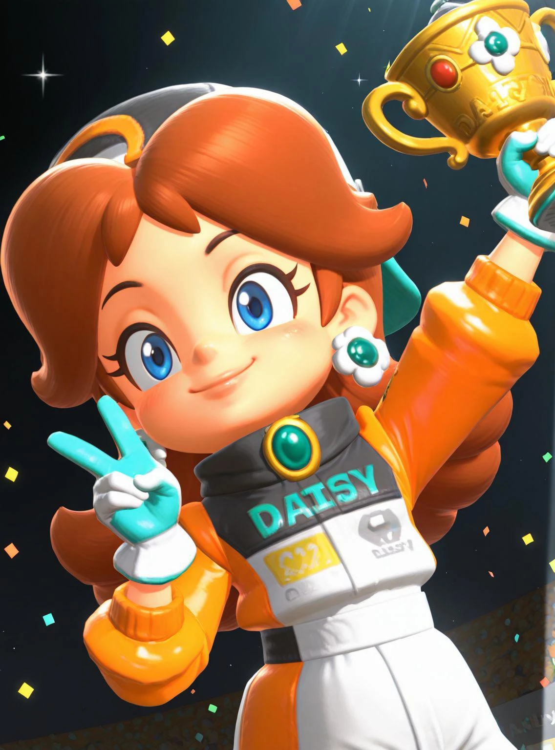 Princess Daisy in her Pro Racer attire from Mario Kart World.