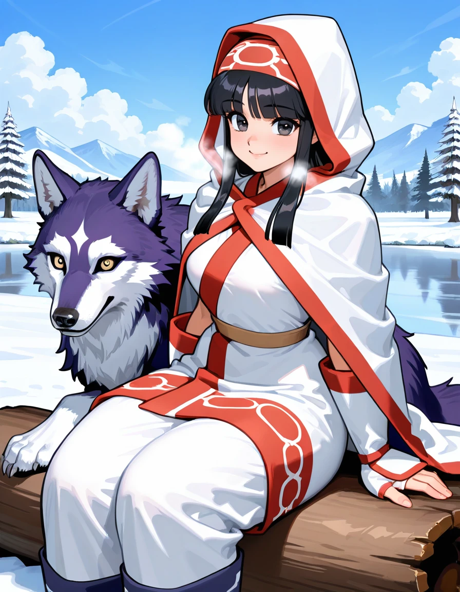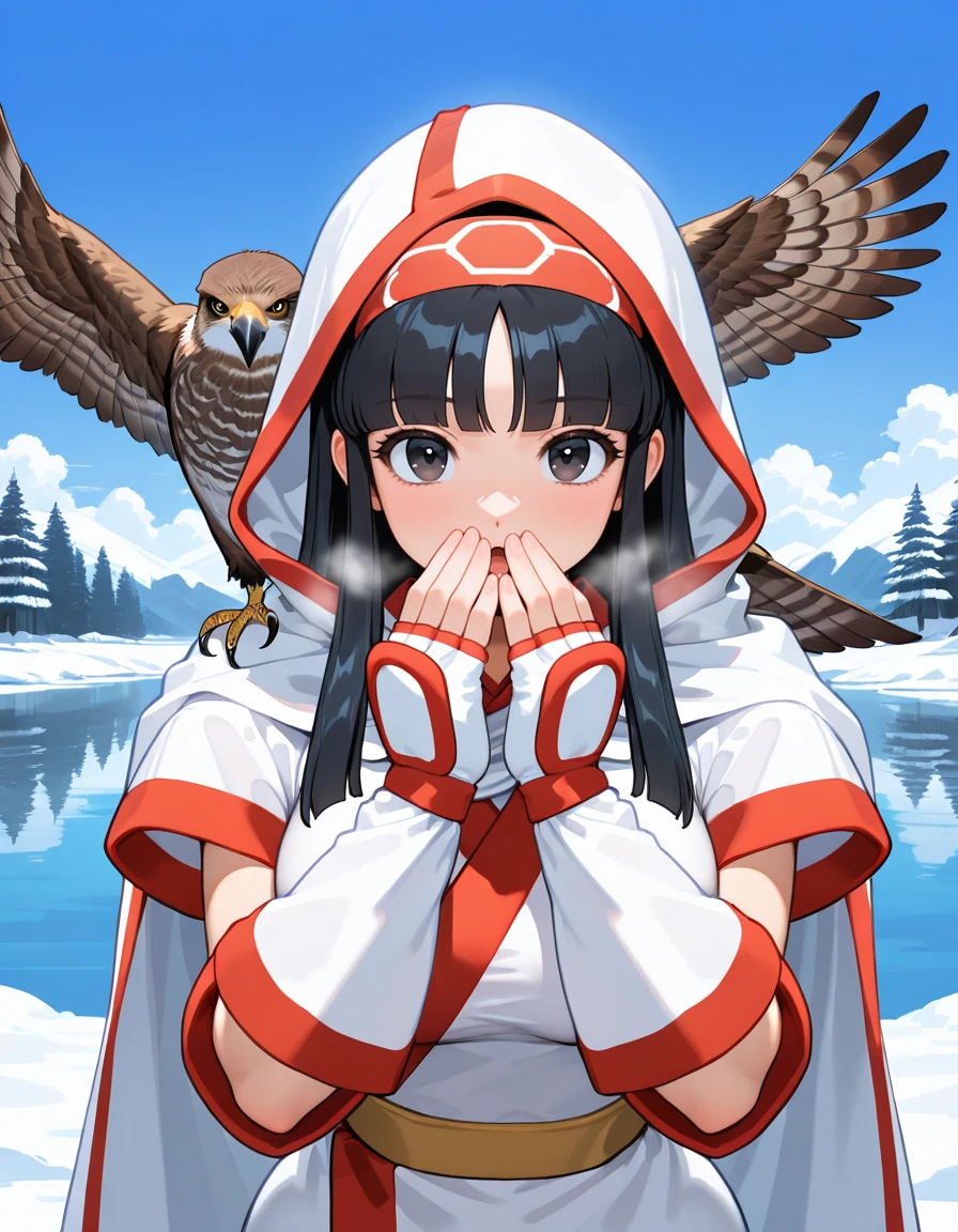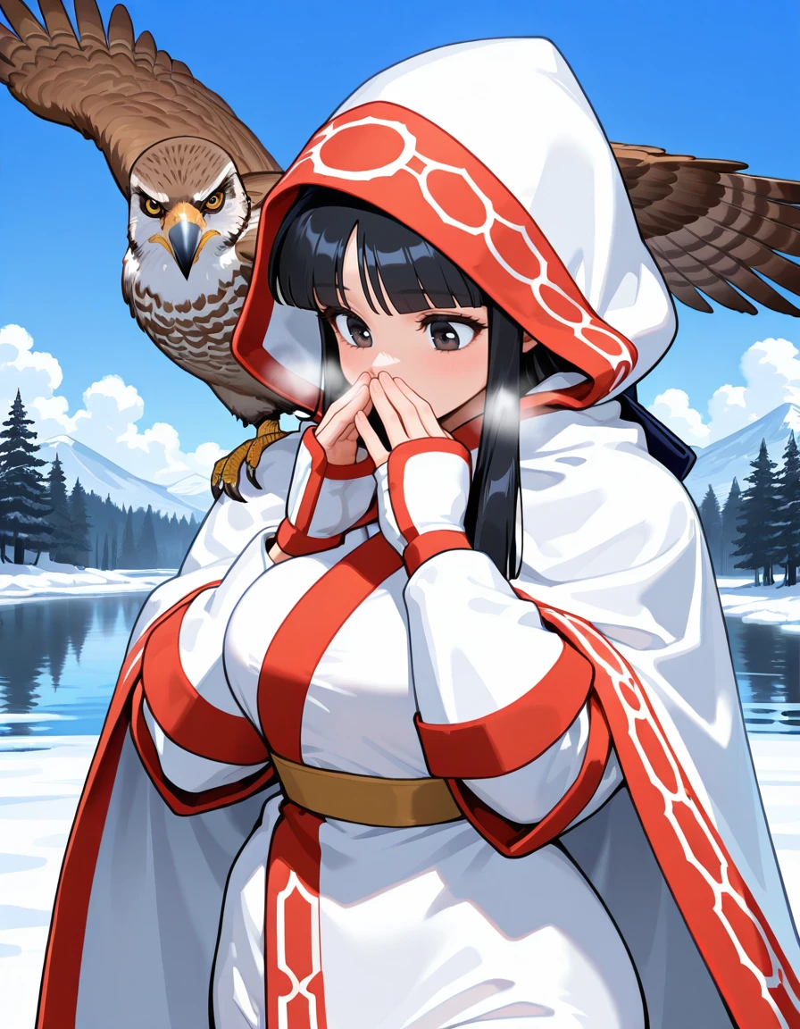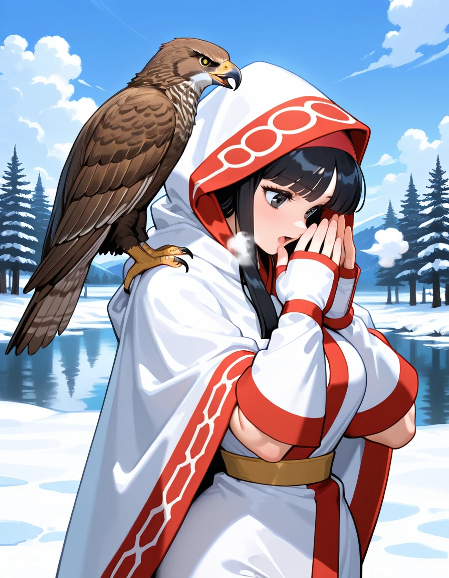 (ainu hooded cloak:1.5), (hood up, no bow:1.5)