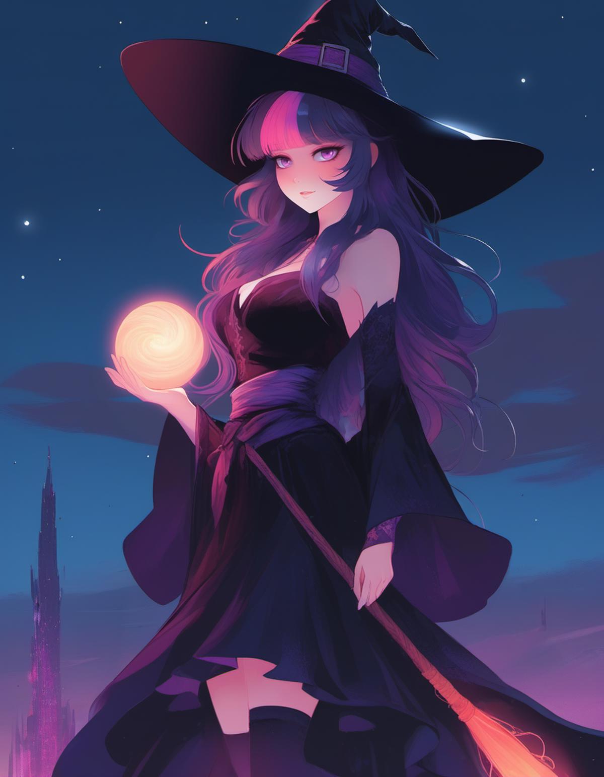 SDXL version 1.0 Twilight Sparkle LoRA trained on 44 images trained with tags and natural language captions. The model will sometimes fail to generate eye color correctly requiring inpainting and will sometimes diffuse the hair stripe into more of a gradient, adding tags like 'purple eyes' and 'purple hair with a pink stripe' can mitigate this issue but is not always necessary.