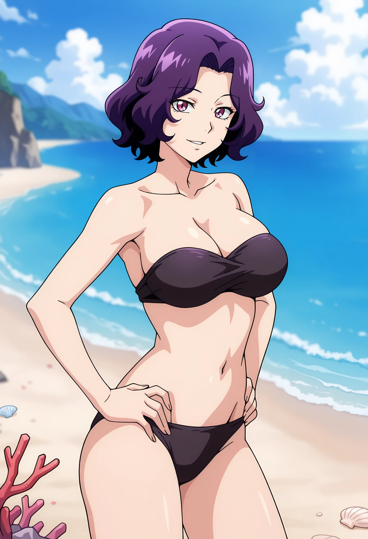 ribbed shirt, black shirt, shoulder cutout, short sleeves, short shorts, blue shorts