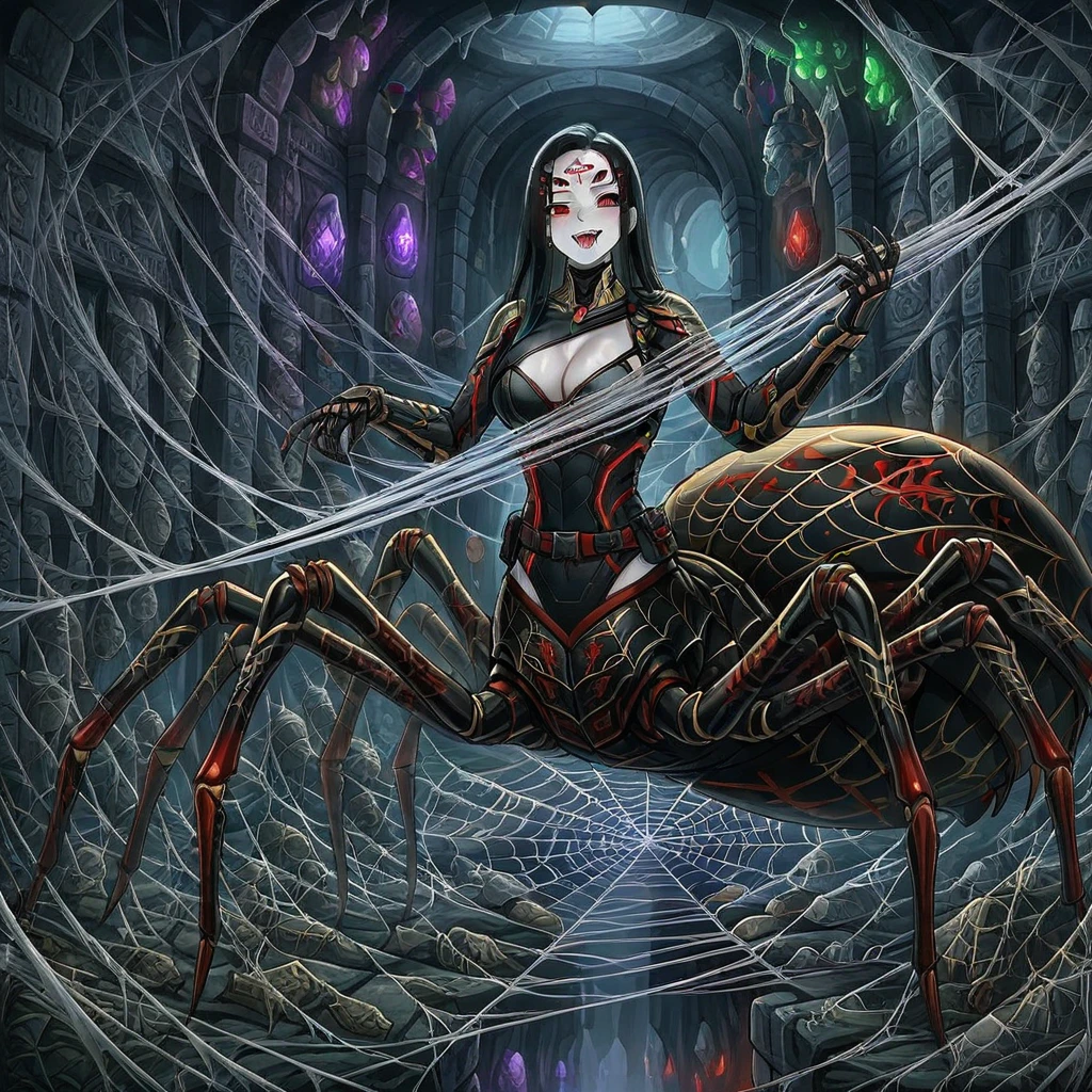 Joro is a Jorōgumo — a spider demon from Japanese folklore. By day, a flawless woman. By night, something older and far more dangerous. Her silk kimono is woven from her own webs. Her smile never quite reaches all six of her eyes.