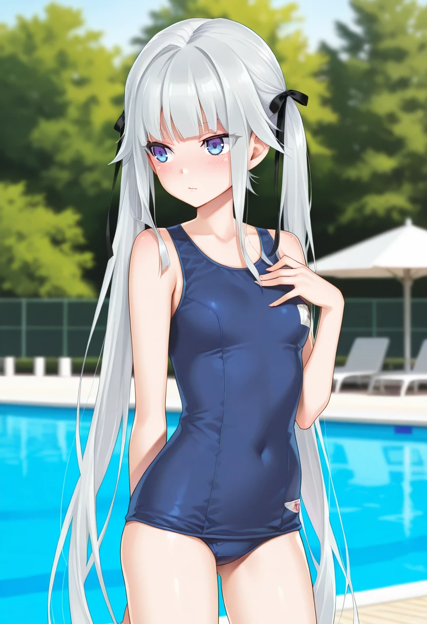 school swimsuit, blue one-piece swimsuit