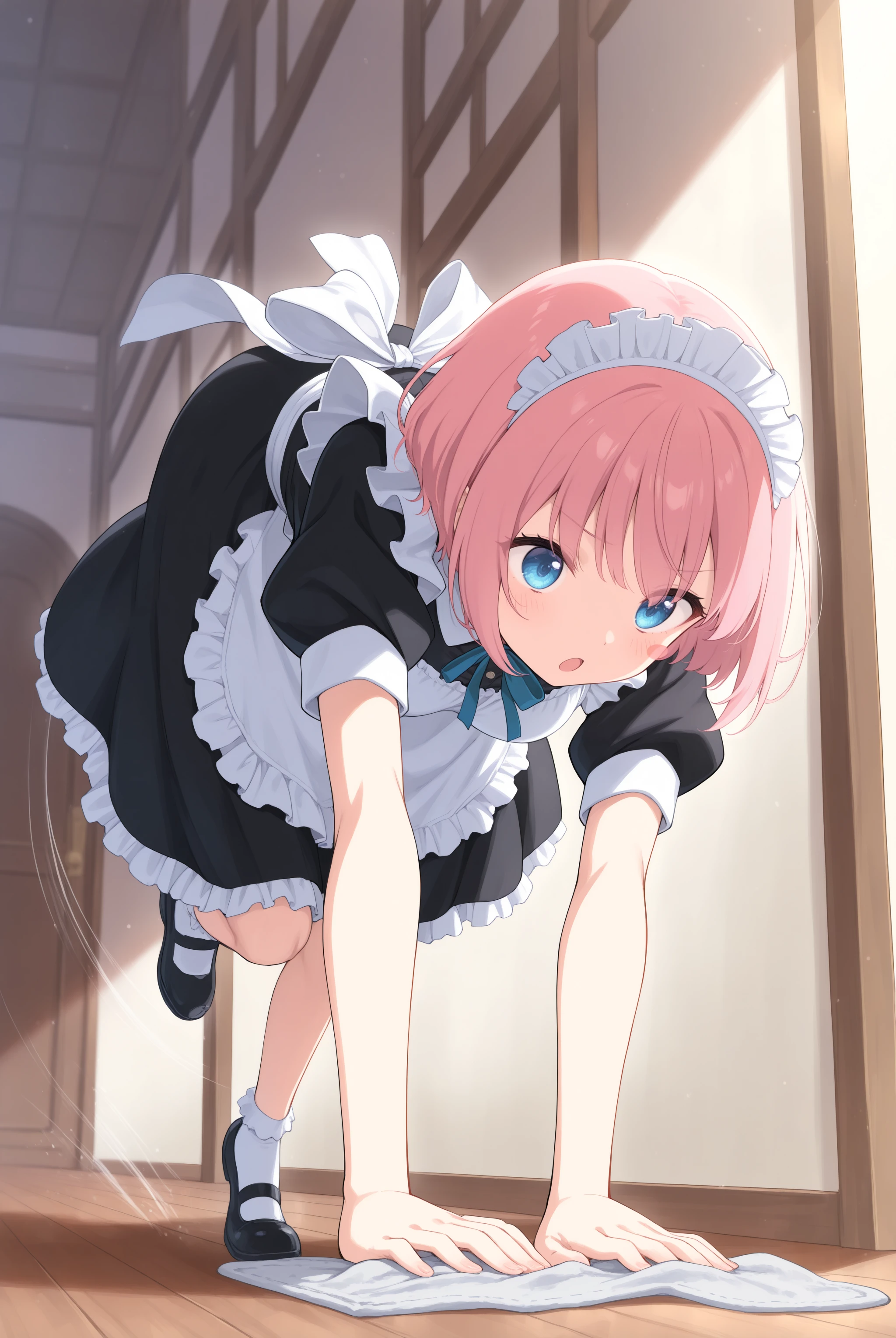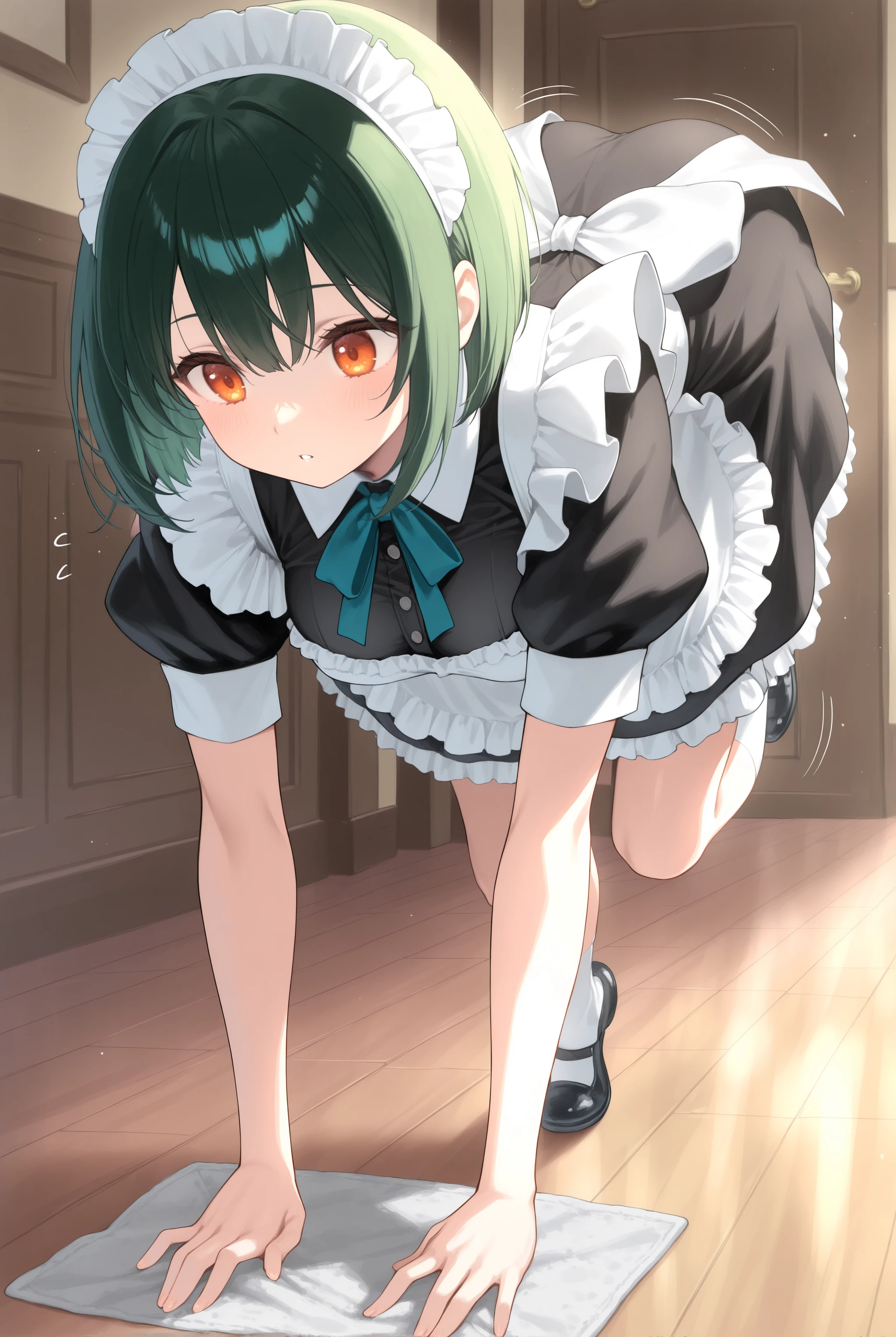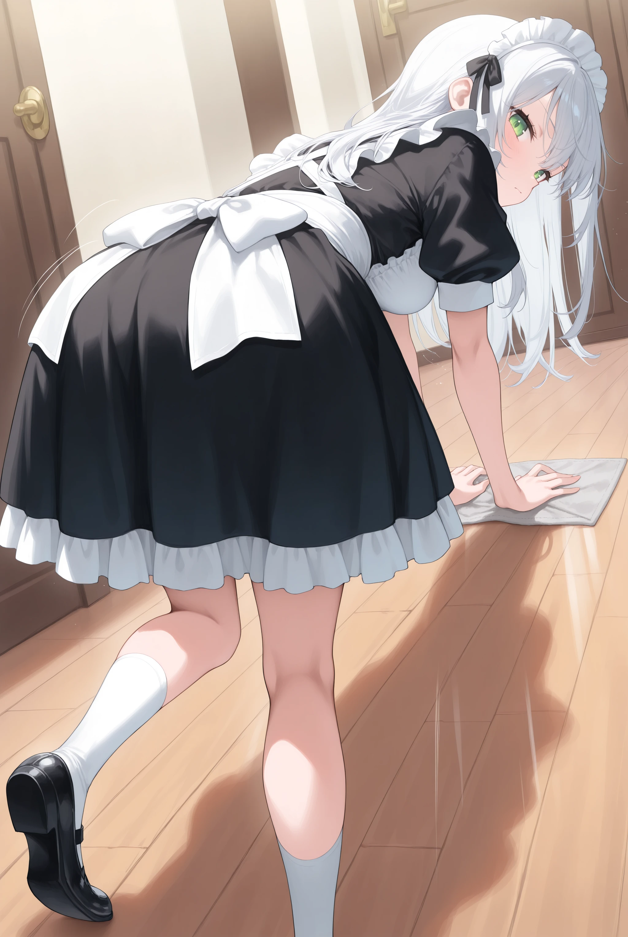 It can be triggered by the trigger word alone, so feel free to use cleaning, cloth, rag, etc. based on preference. Since it often involves kneeling, if you prefer the cleaning action, include ?????????, ?????????, looking down, leaning forward, running, etc.