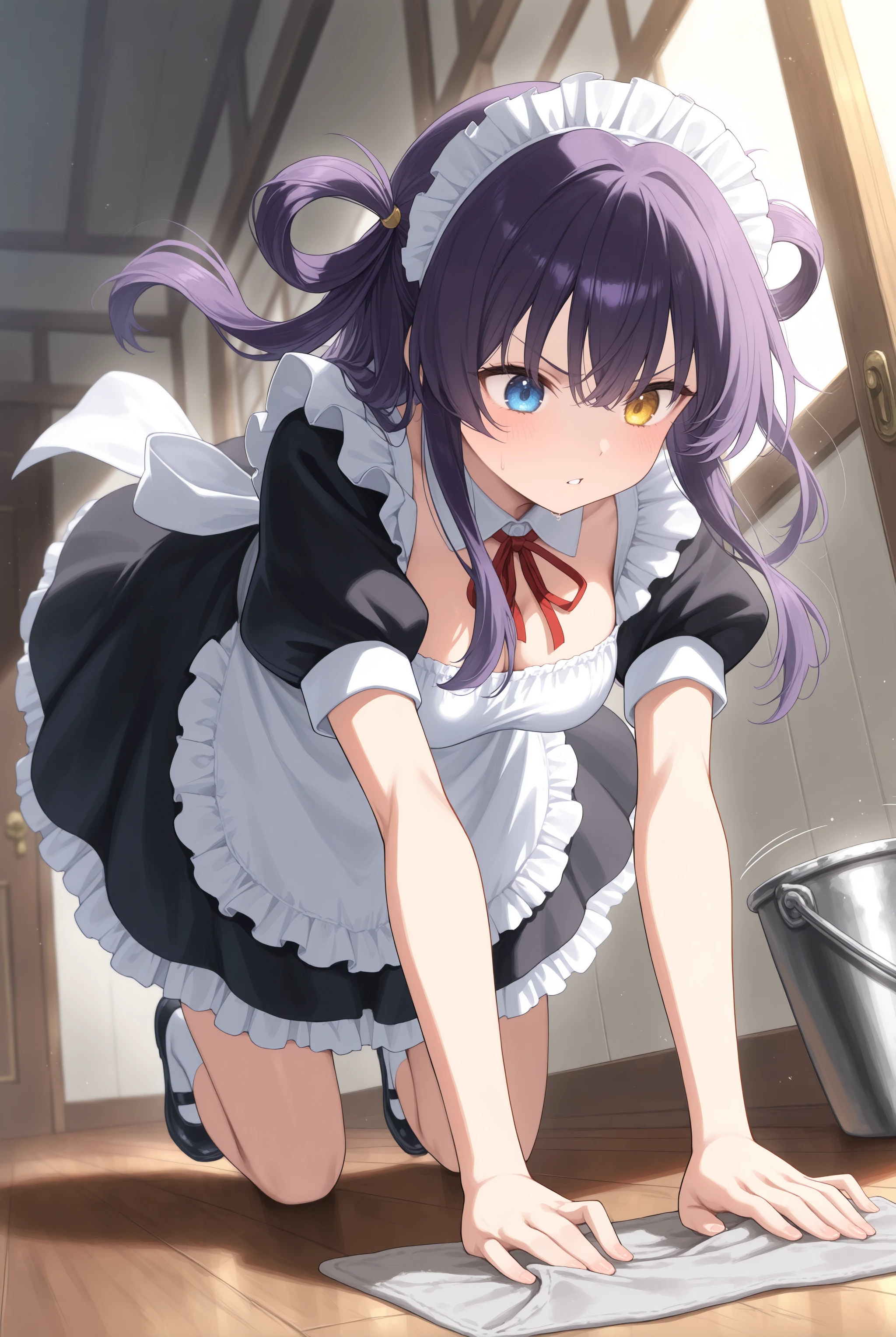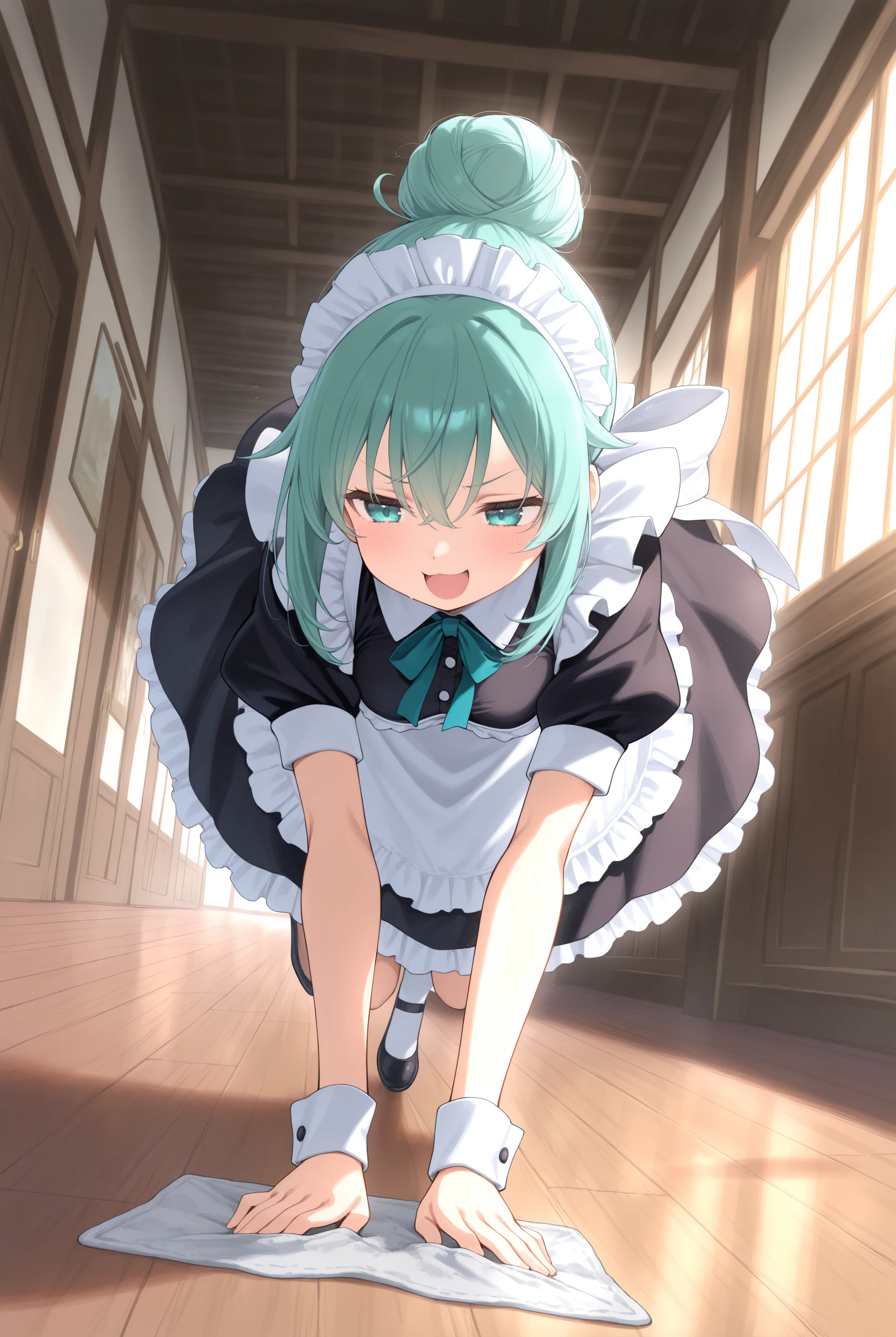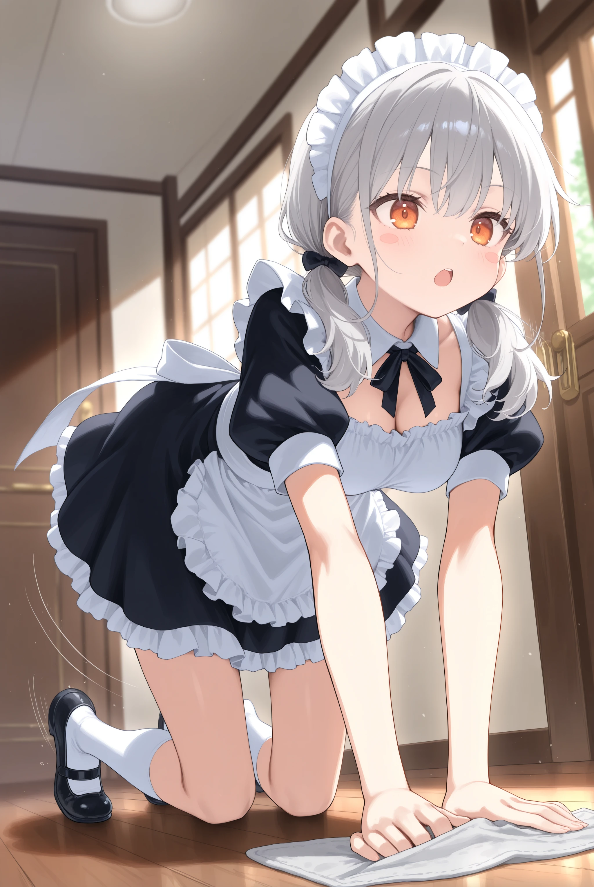 It can be triggered by the trigger word alone, so feel free to use cleaning, cloth, rag, etc. based on preference. Since it often involves kneeling, if you prefer the cleaning action, include ?????????, ?????????, looking down, leaning forward, running, etc.