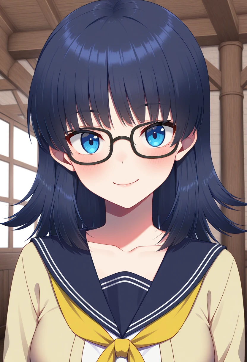 • chrisww, blue eyes, glasses, black hair, medium hair, flipped hair, medium breasts,