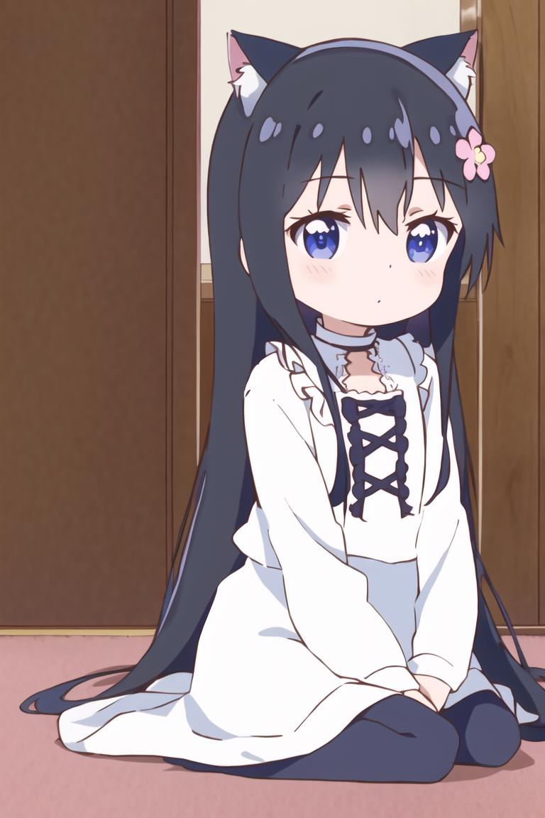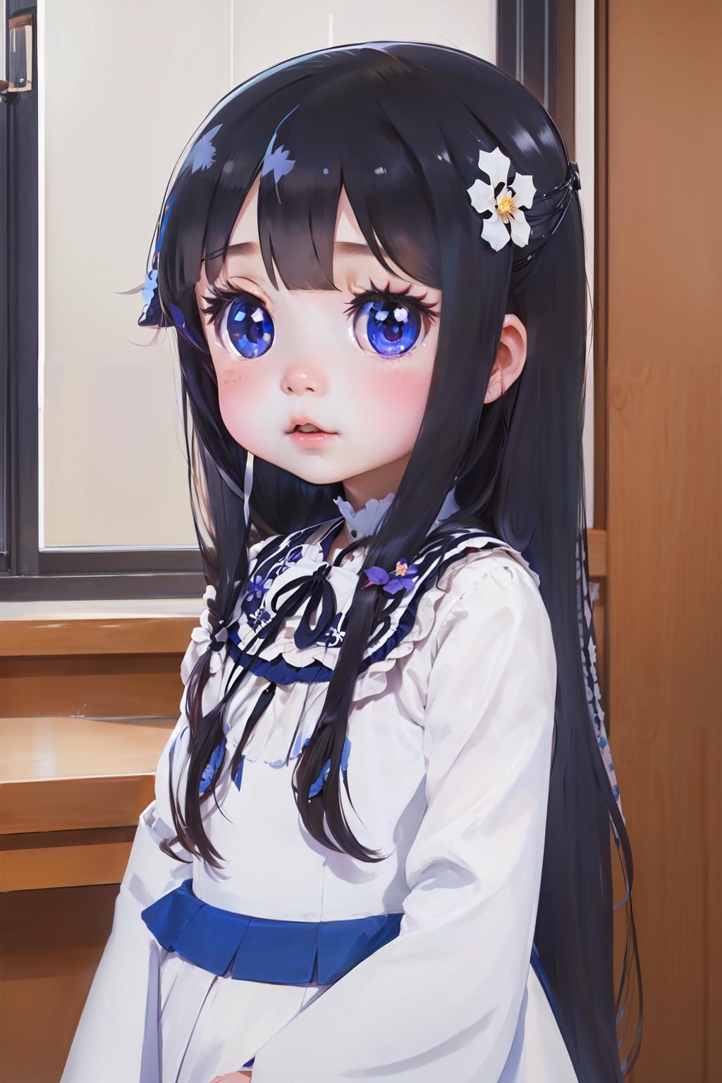 shirosaki hana, long hair, hair flower, black hair, blue eyes