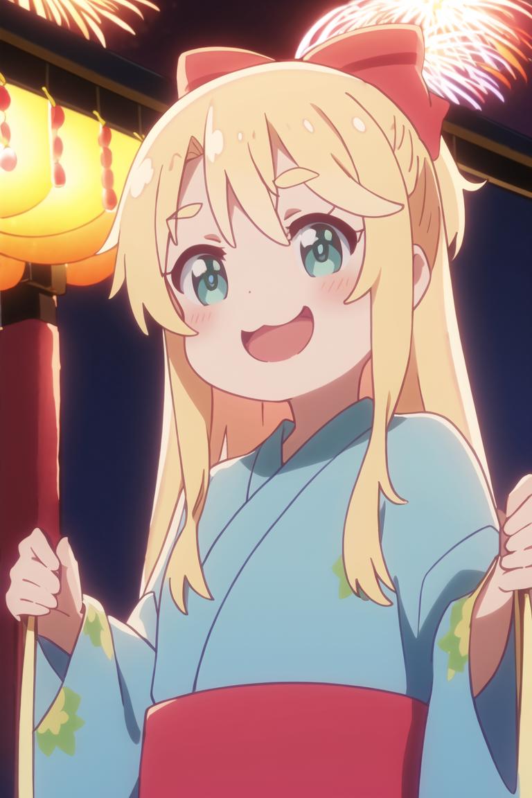 himesaka noa, :3, blonde hair, long hair, green eyes, hair bow