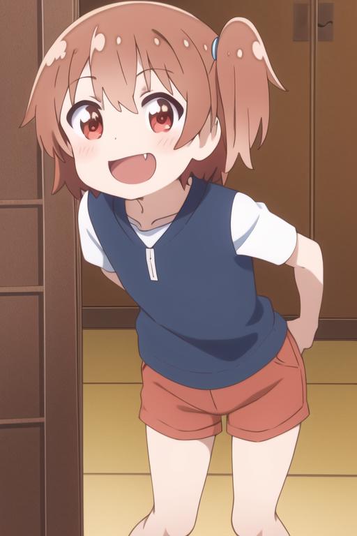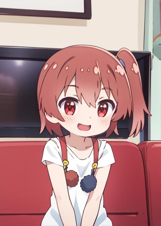hoshino hinata, brown hair, red eyes, one side up, side ponytail, short hair