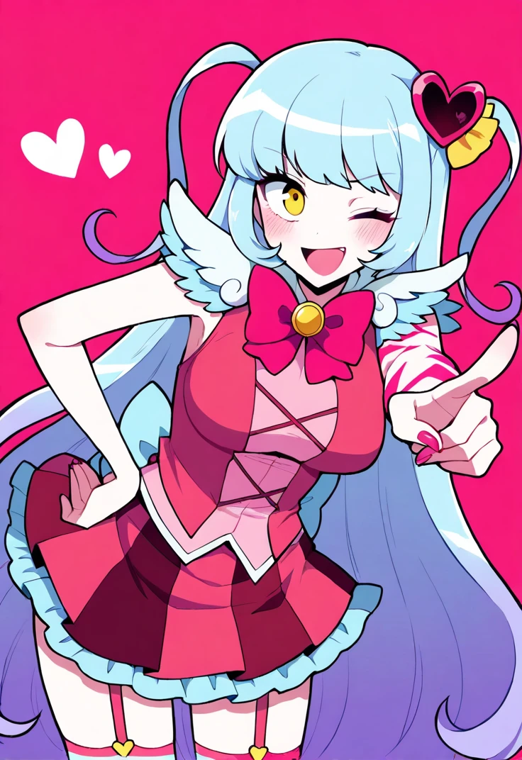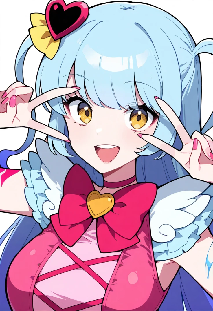 yellow eyes, long hair, blue hair, heart hair ornament