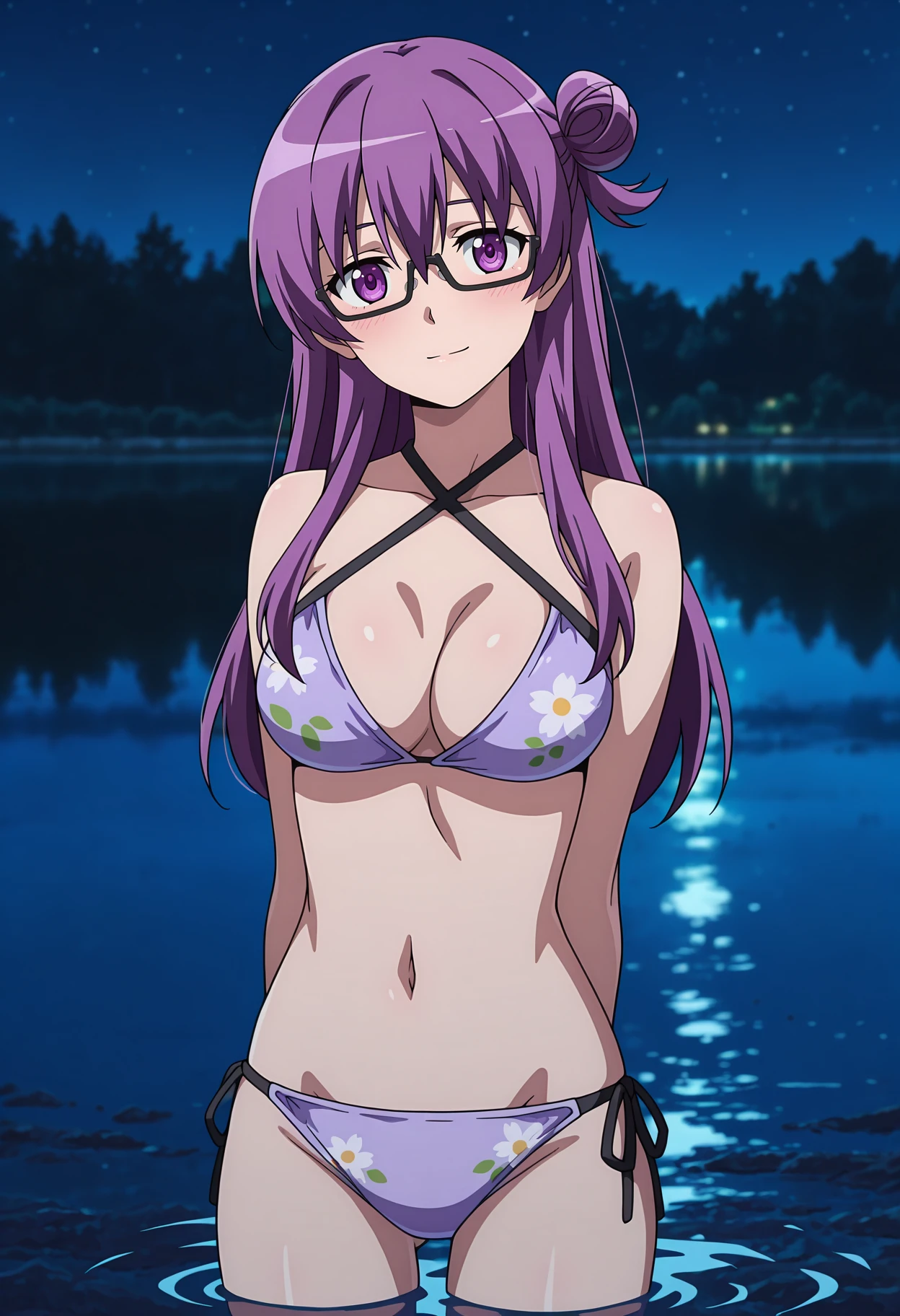 sleeveless dress, china dress, purple dress, cleavage cutout, detached sleeves, side slit, white thighhighs