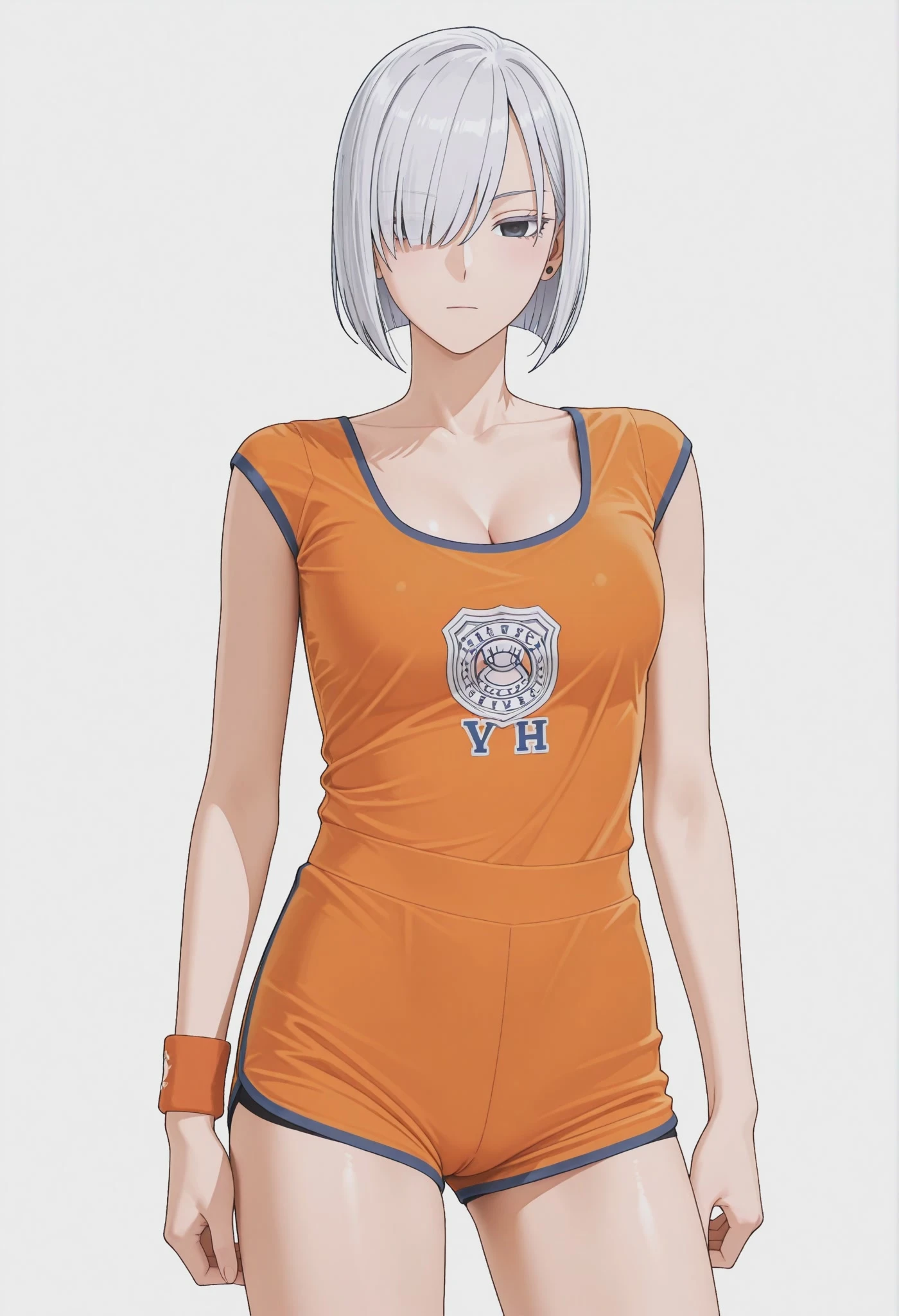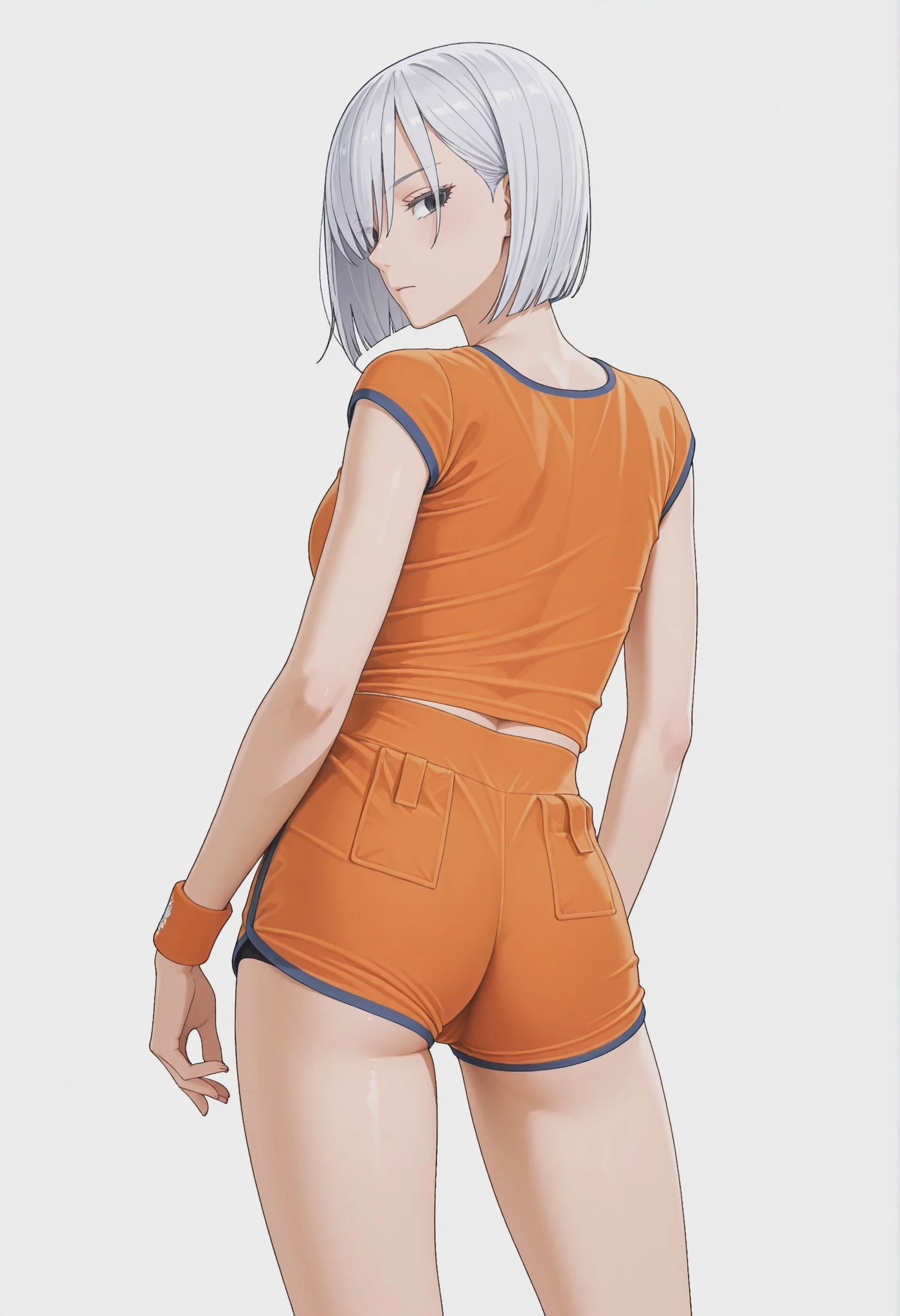 orange shorts, short shorts, cameltoe