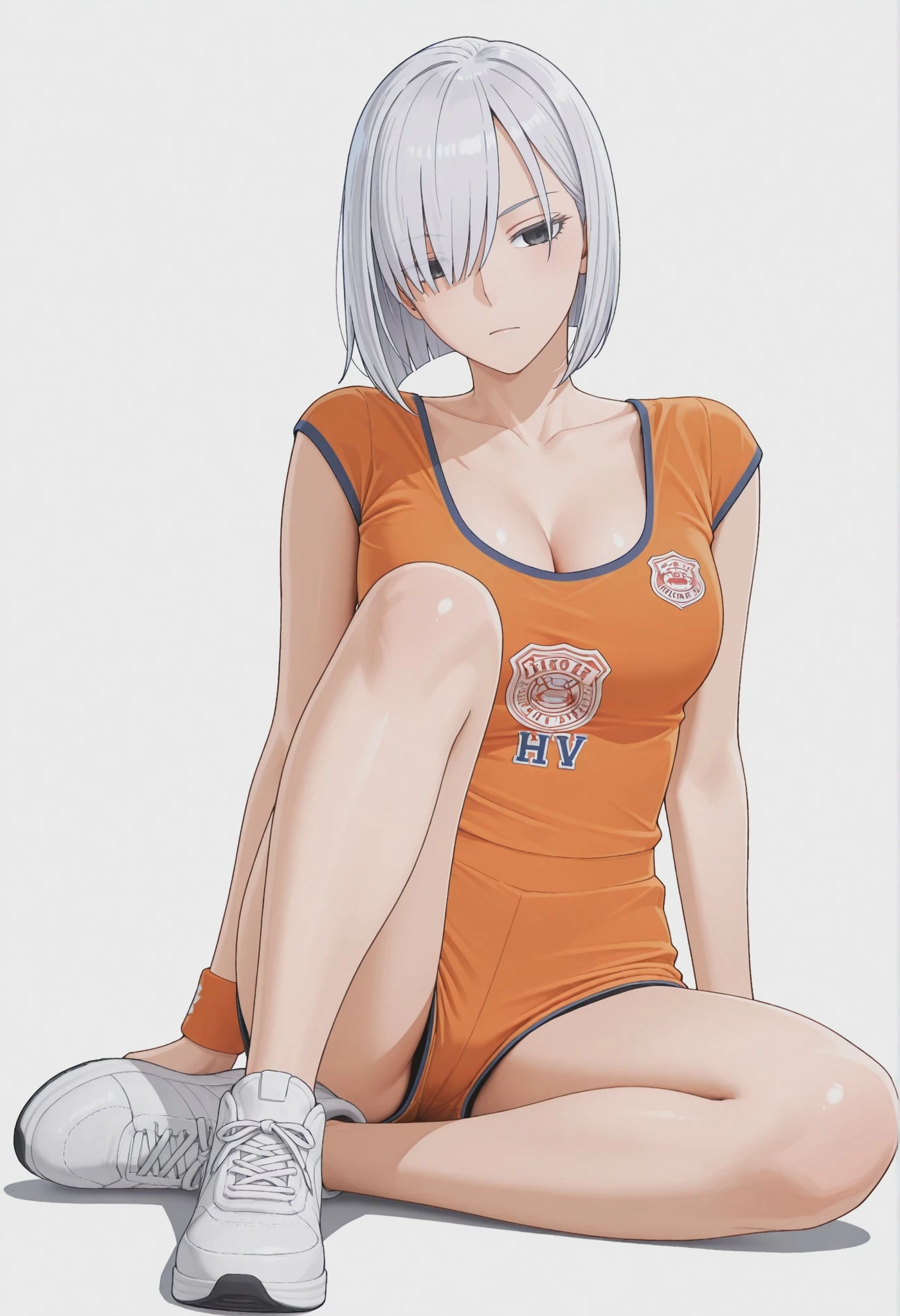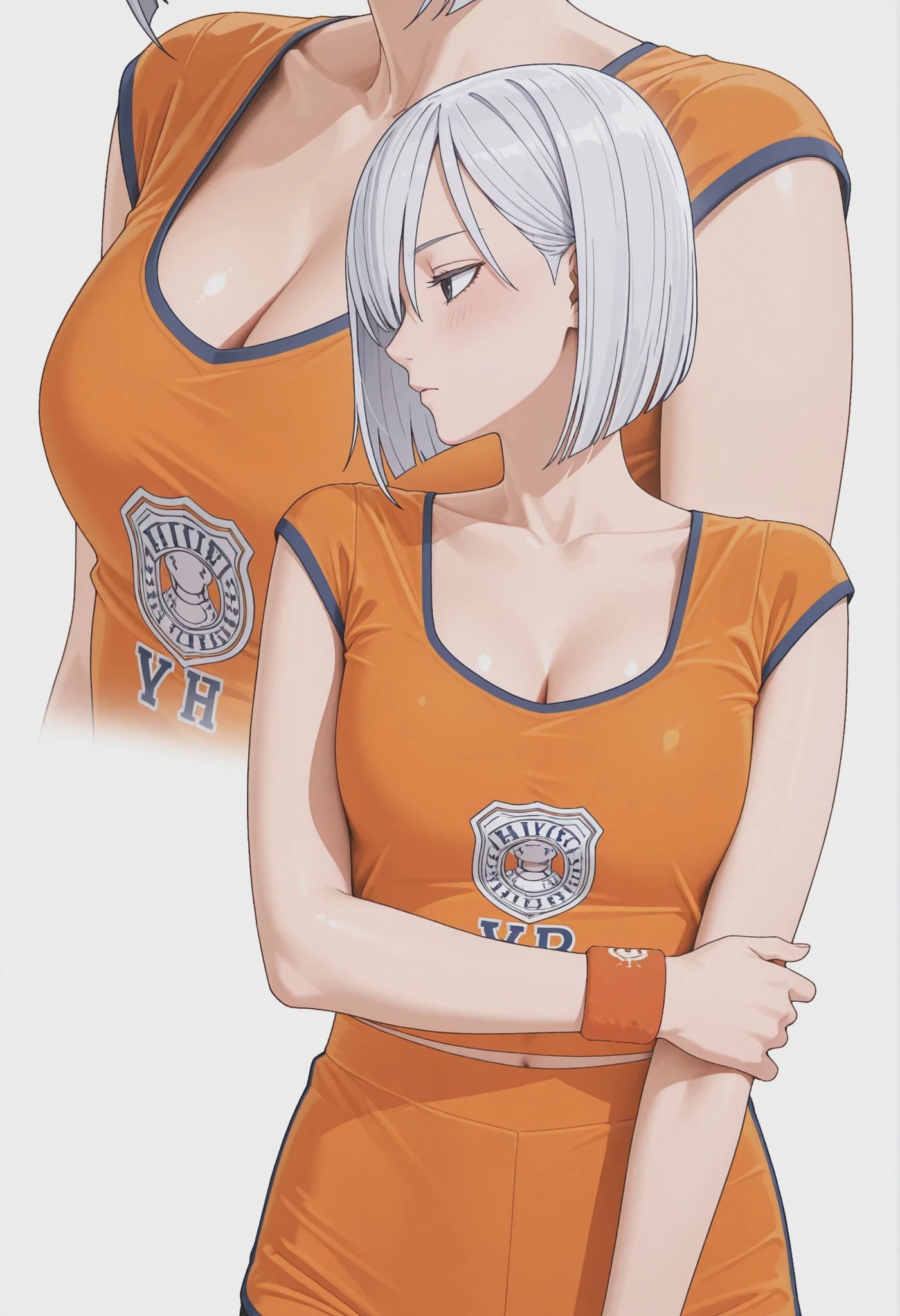 hellovenusorangegym, orange shirt, sportswear, cleavage, taut clothes