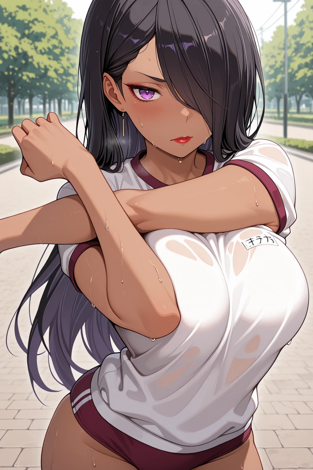 aisha belka, dark-skinned female, black hair, long hair, hair over one eye, purple eyes, red lips๐ข๐๐๐ณ๐ถ๐: