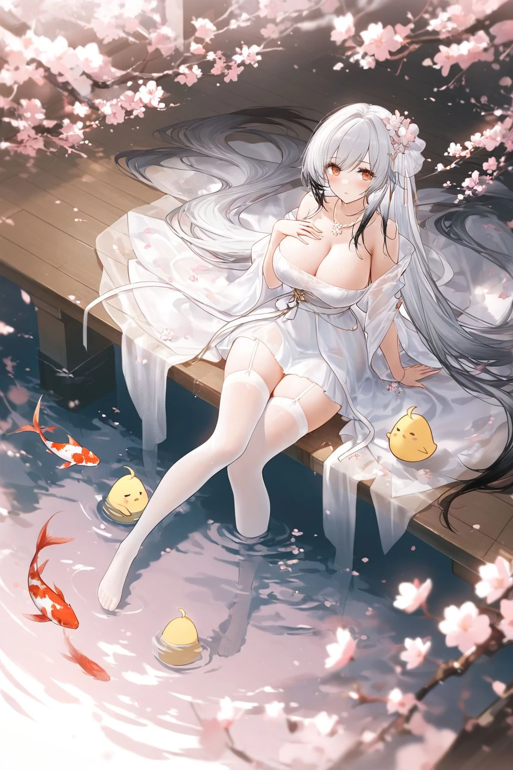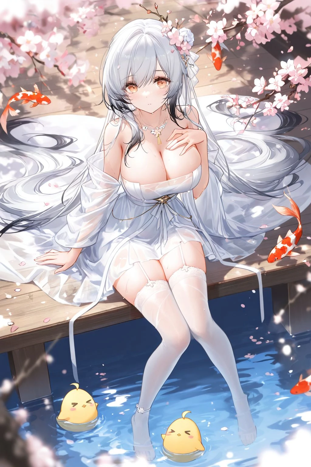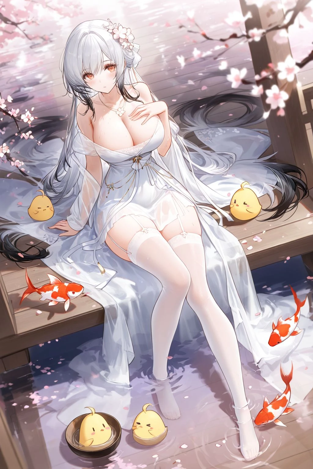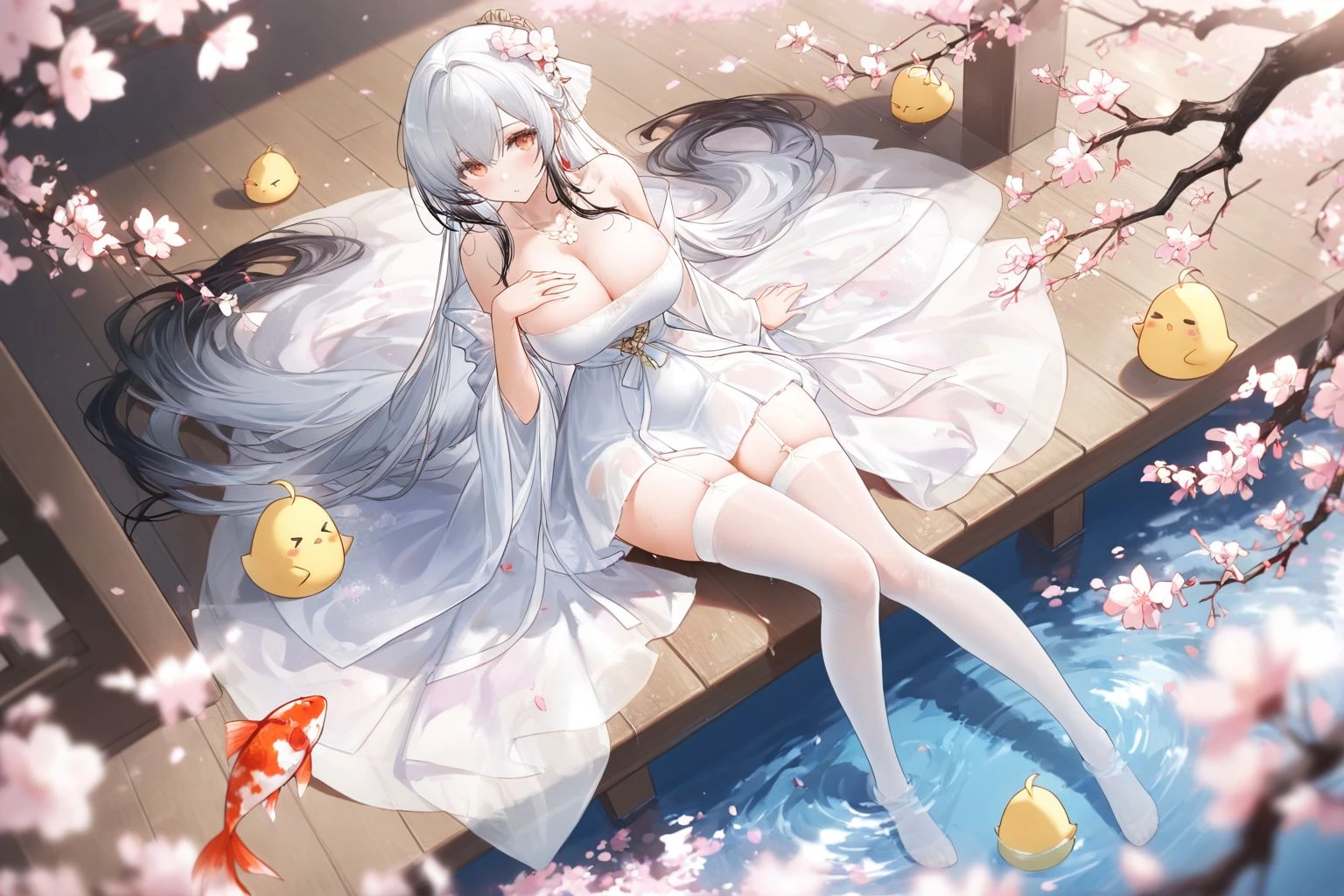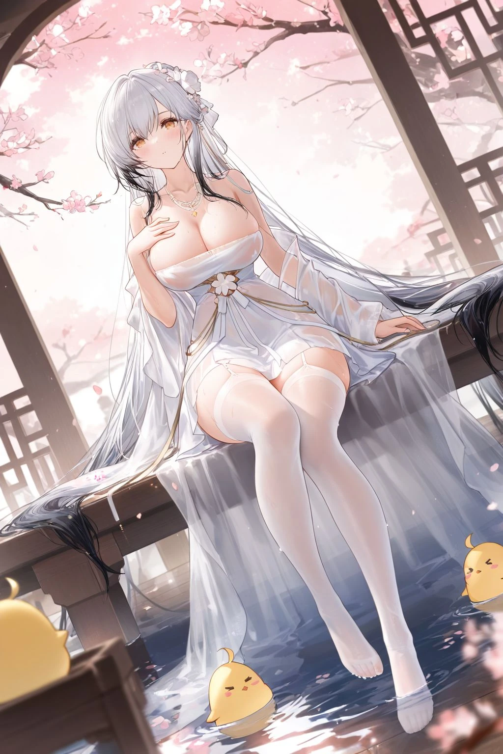 Trigger words: Hai Tien (Azur Lane), white hair, multicolored hair, yellow eyes