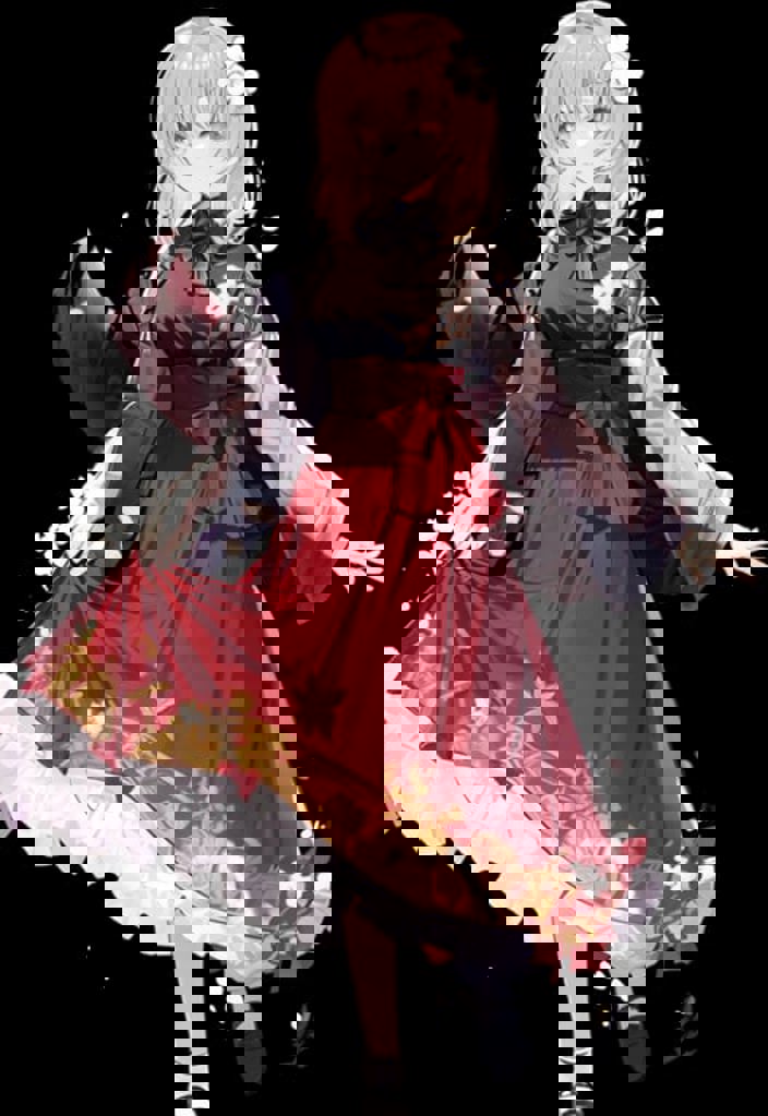 For Rena's casual outfit, use white dress, beret, purple bow tie, long dress, black thighhighs, high black boots tags.