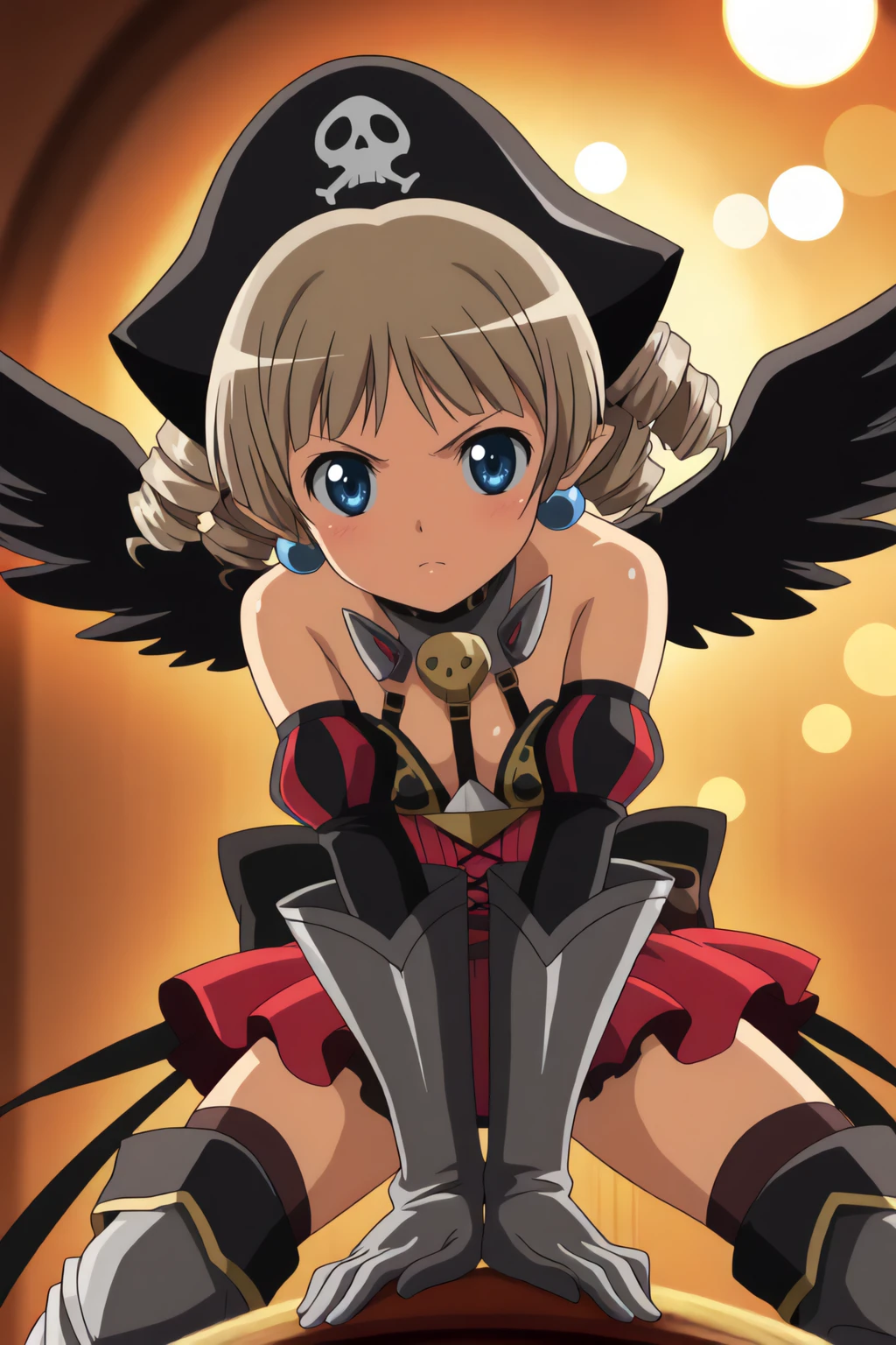 armor, detached sleeves, pirate hat, short hair