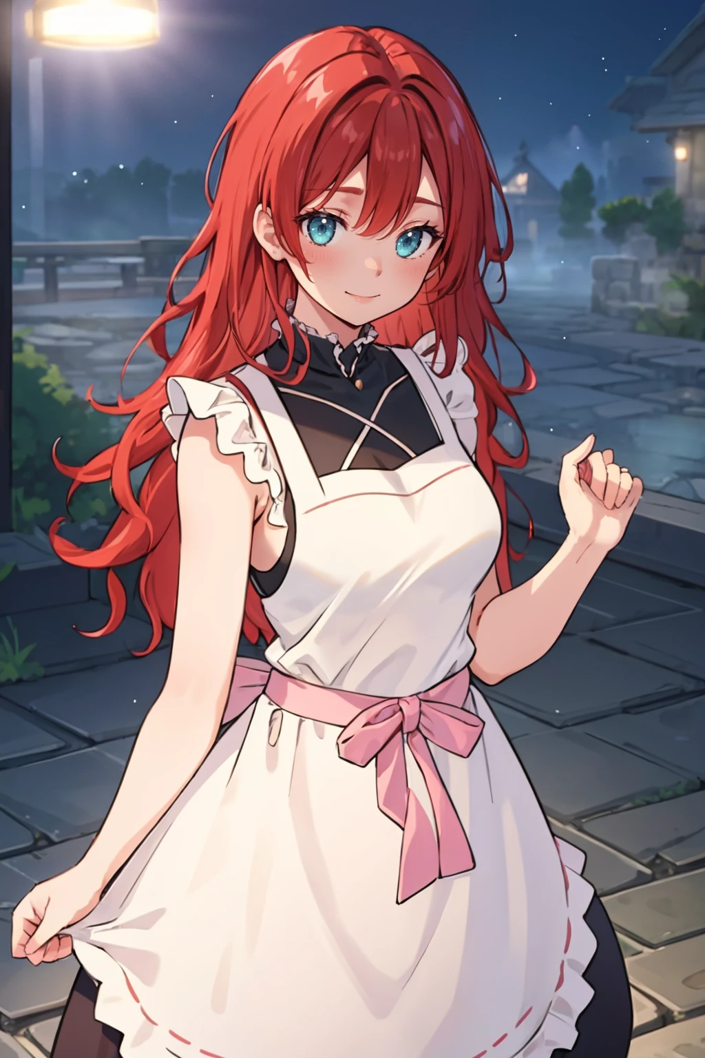To attempt recreating original outfit I used: "white dress, pink ribbon, long sleeves, puffy sleeves, high collar"