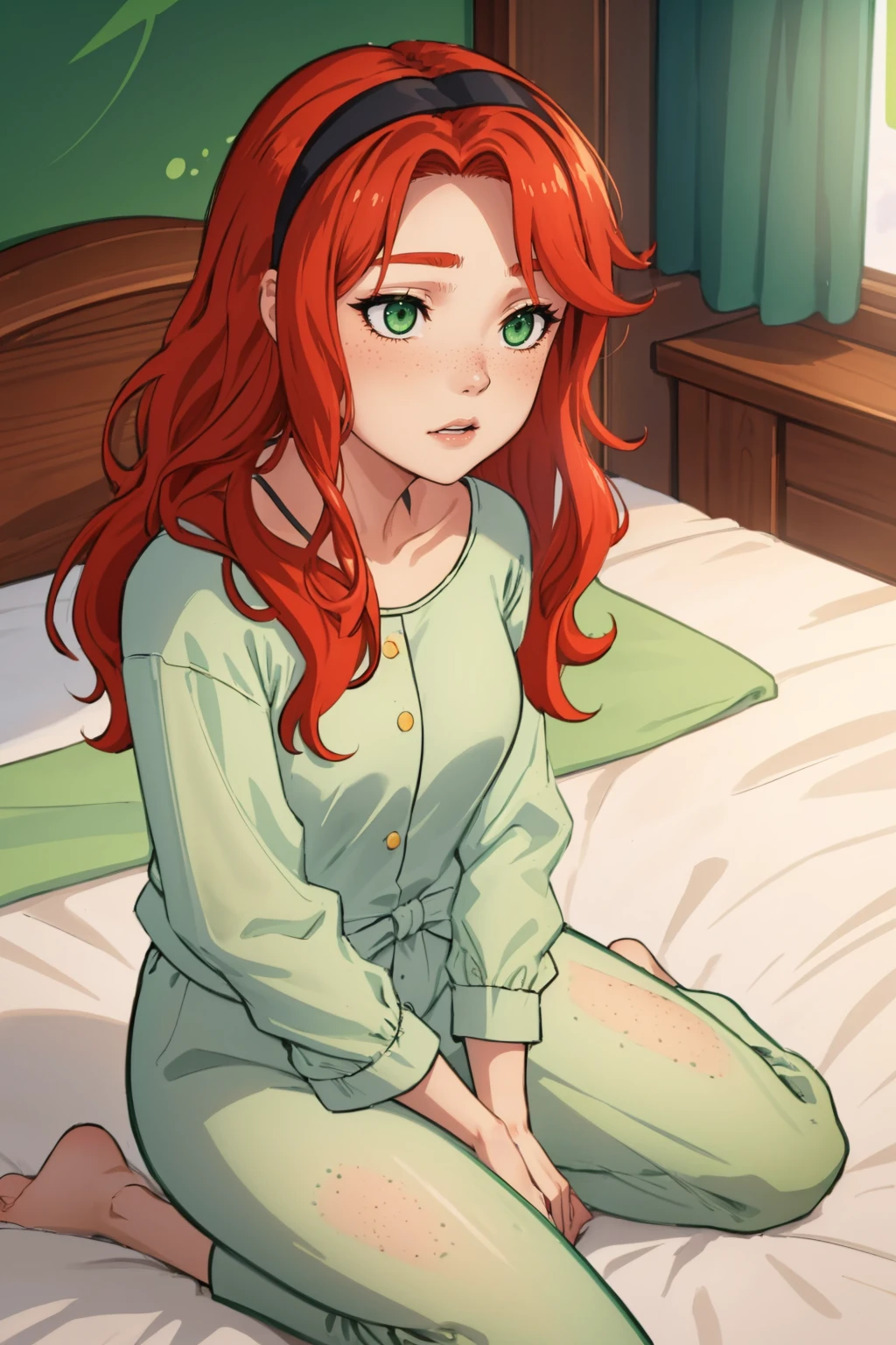 Helping prompts: "green eyes, freckles"