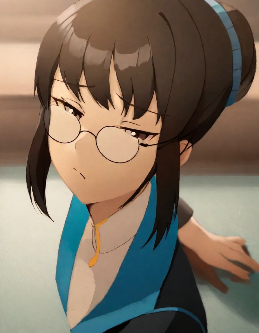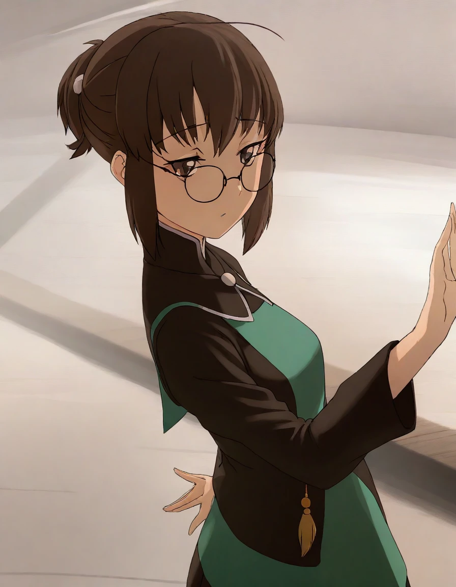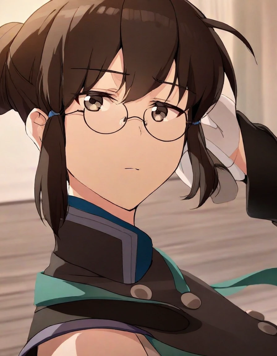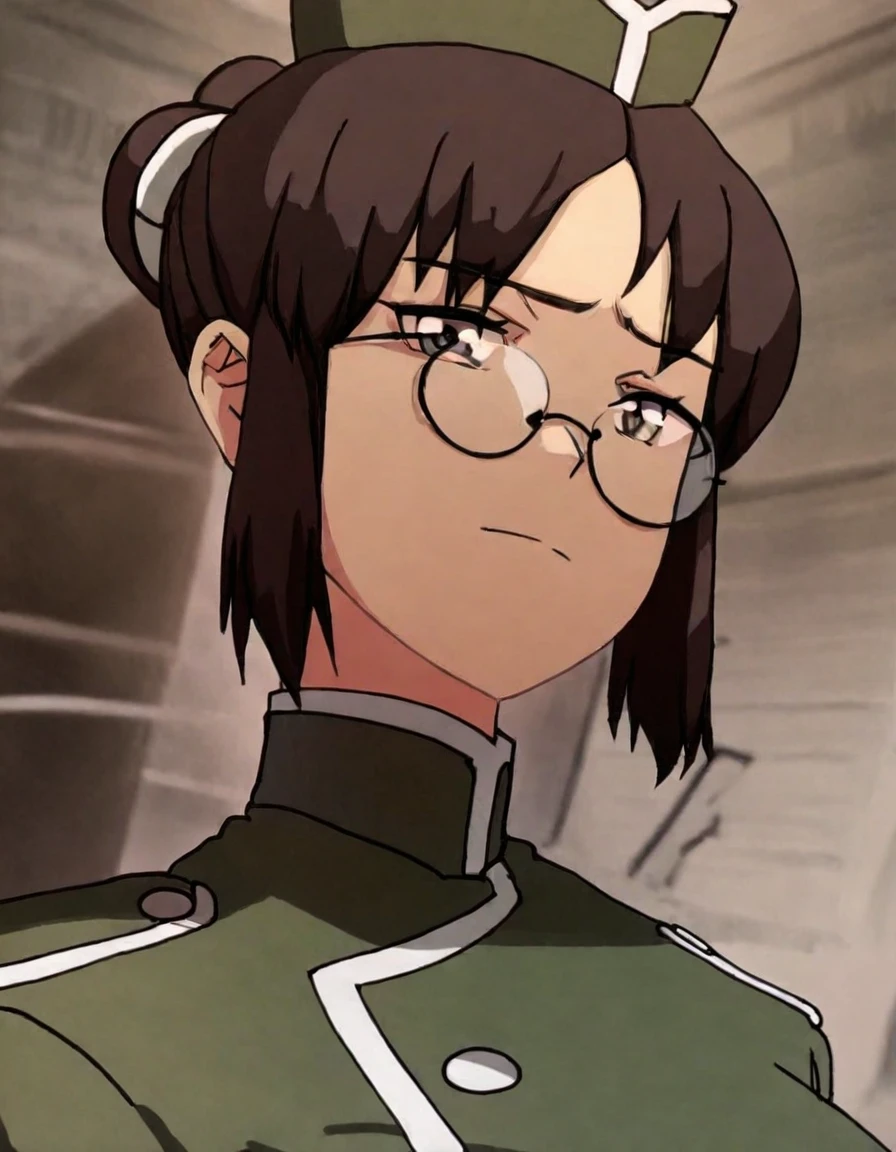 Zhu Li, 1girl, glasses, brown hair, military uniform.