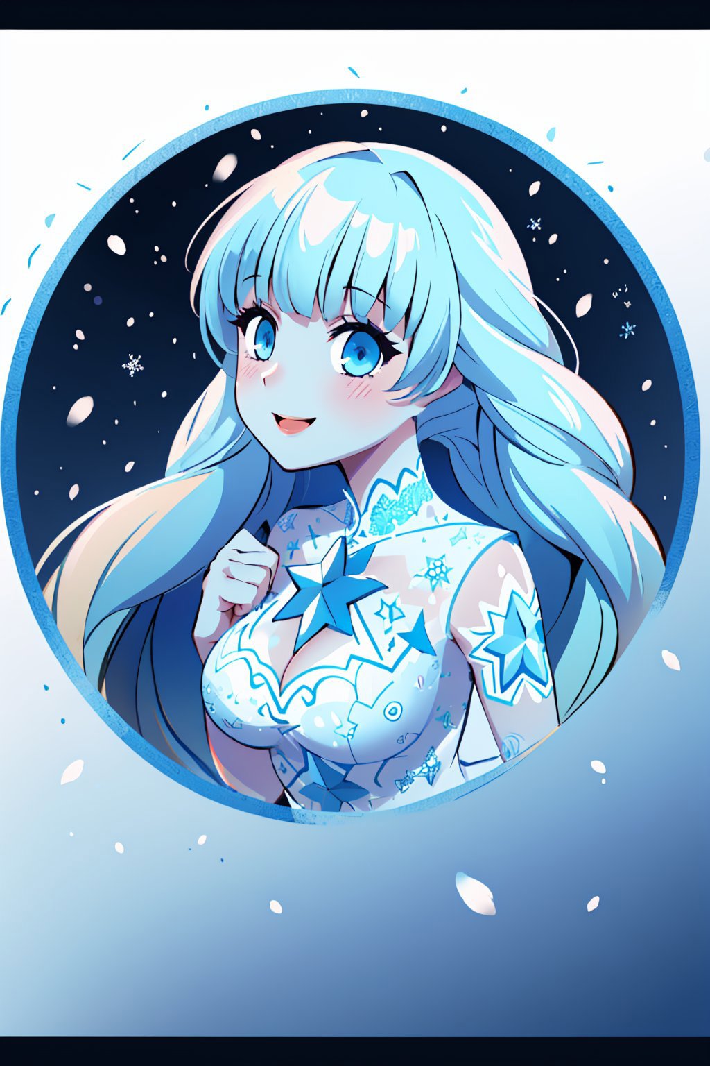 Add "snowflake print, rabbit tail" for her typical look.
