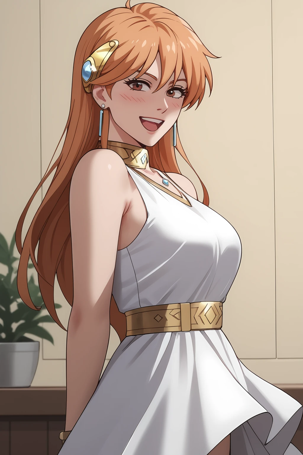 Leona, Ginger Blonde Hair, Long Hair, Brown Eyes,