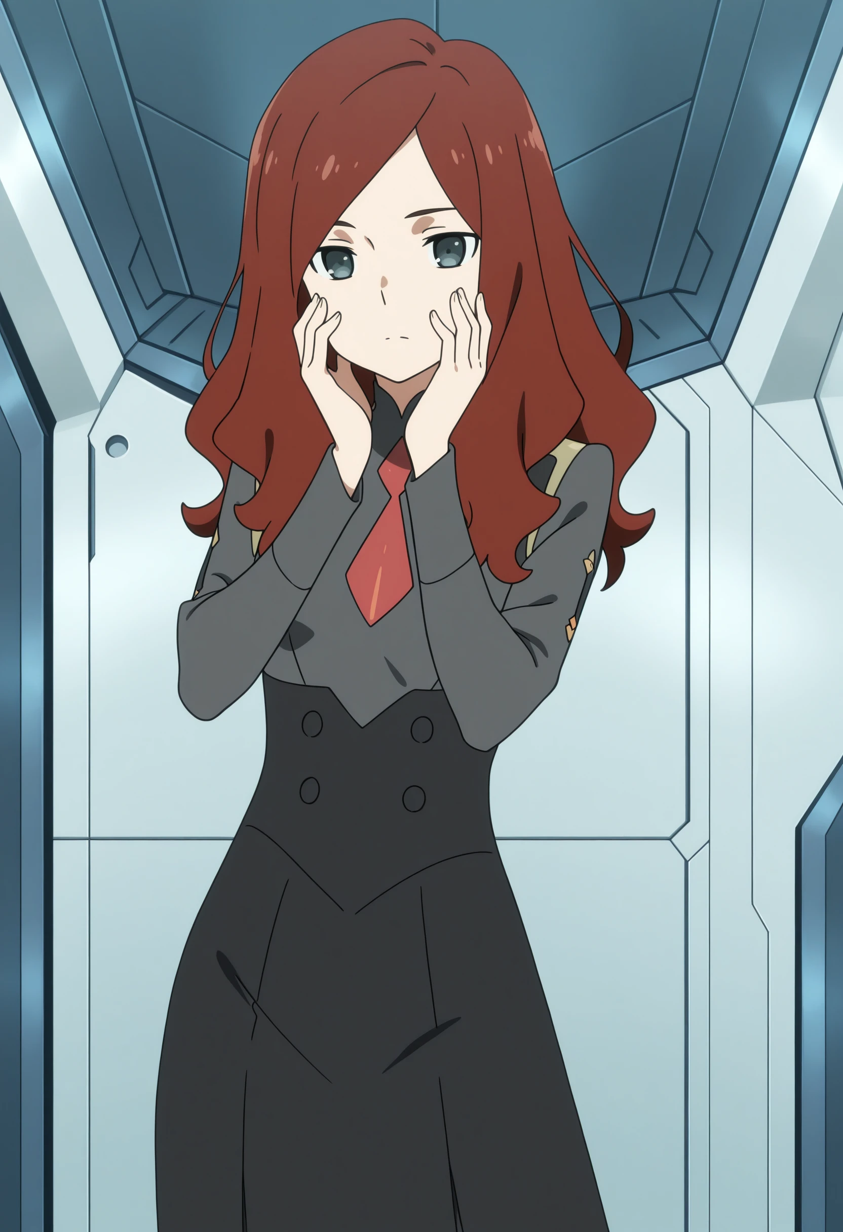 1girl, nana (darling in the franxx), mature female, long hair, brown hair, grey eyes, Outfit: