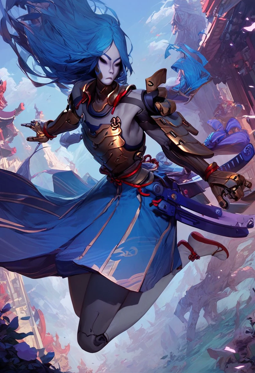 grey skin, dress, blue hair, hollow eyes