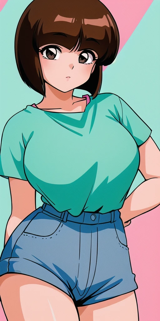 Aqua_shirt_Pink_undershirt_Short_shorts