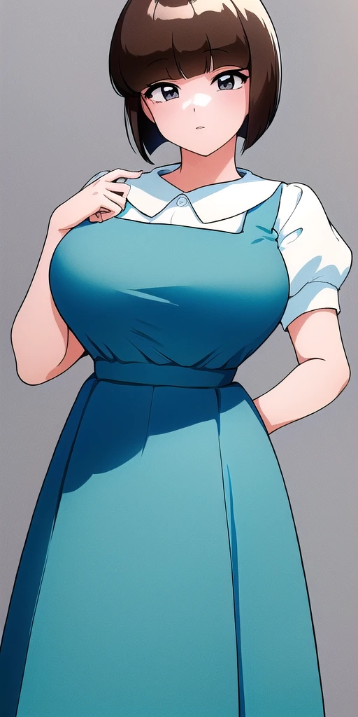 School_uniform_Blue_pinafore_dress_Puffy_sleeves_white_collared_shirt_Blue_back_bow