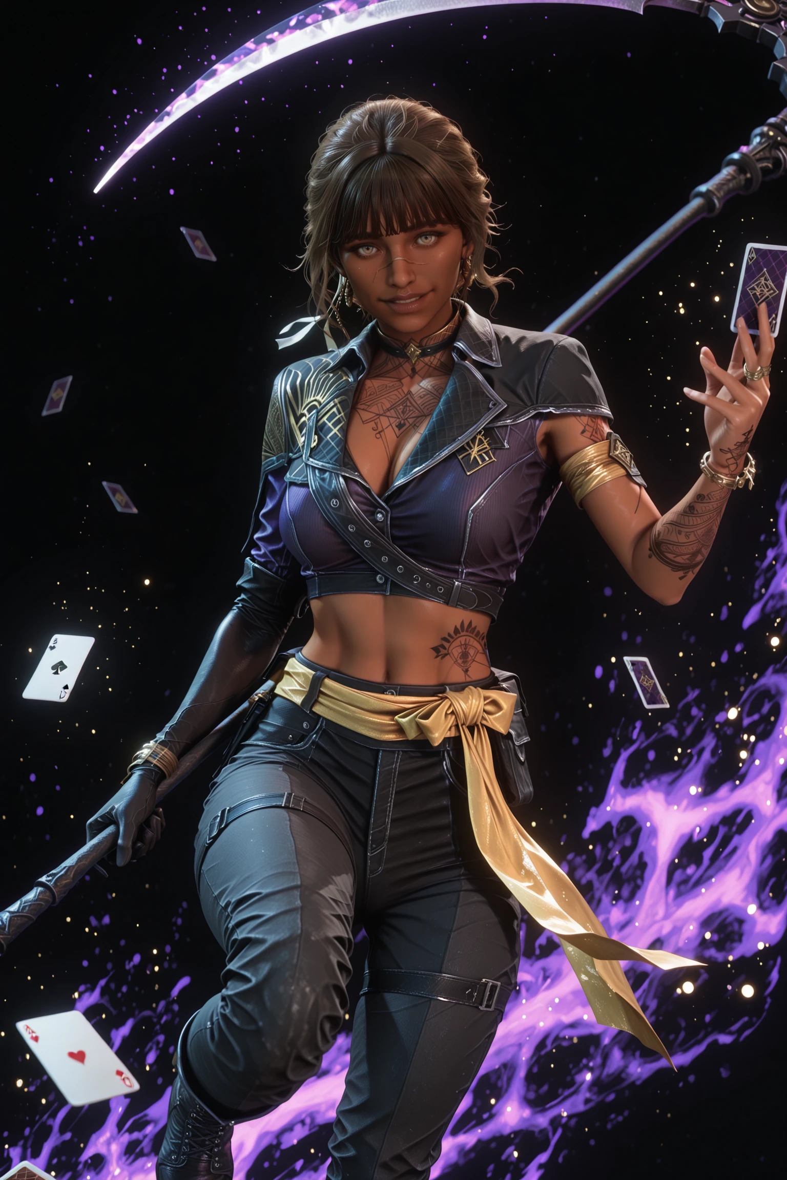 cropped jacket, purple cropped shirt