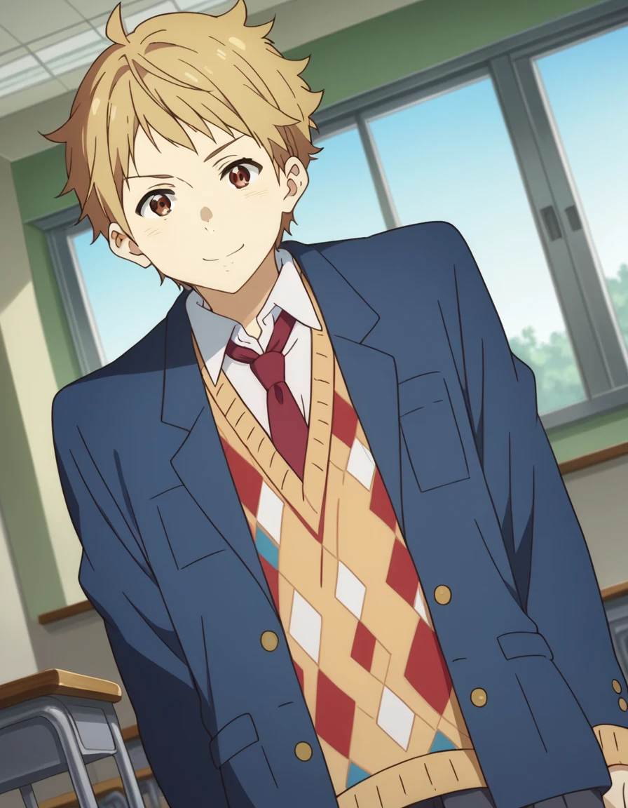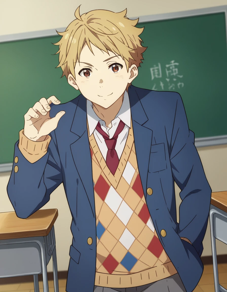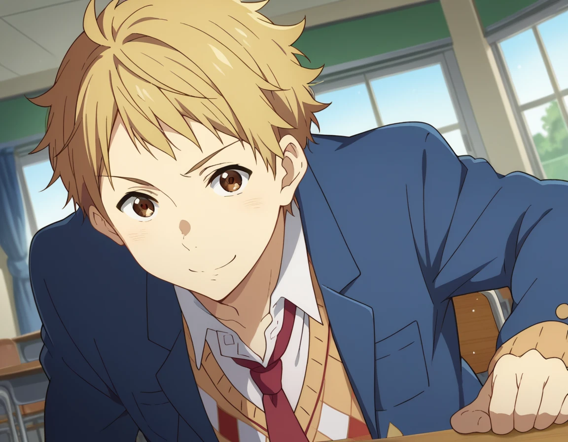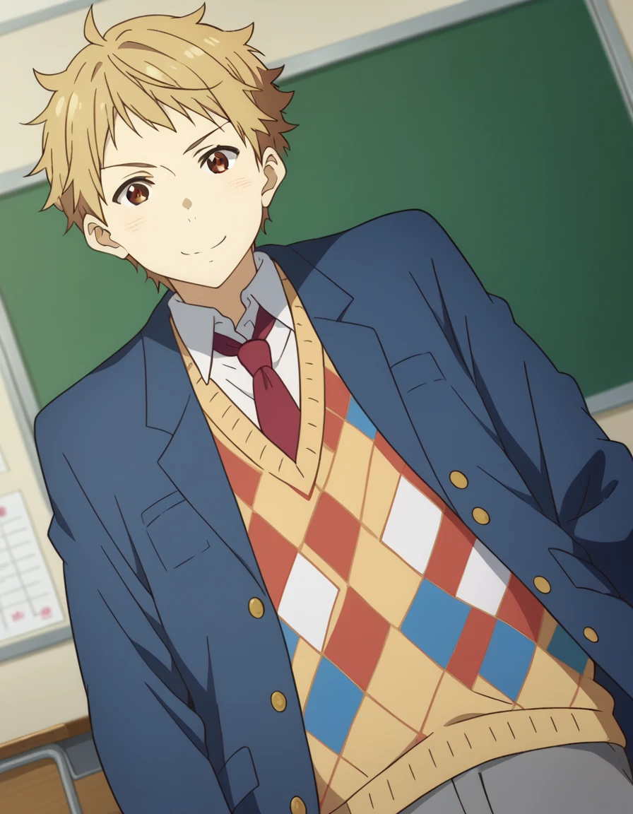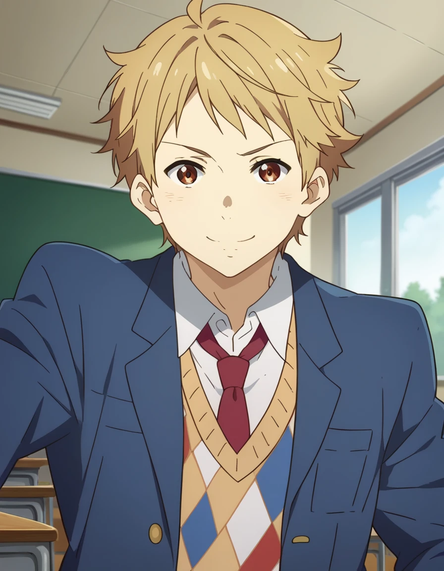 akihito kanbara, blonde hair, brown eyes, male focus,