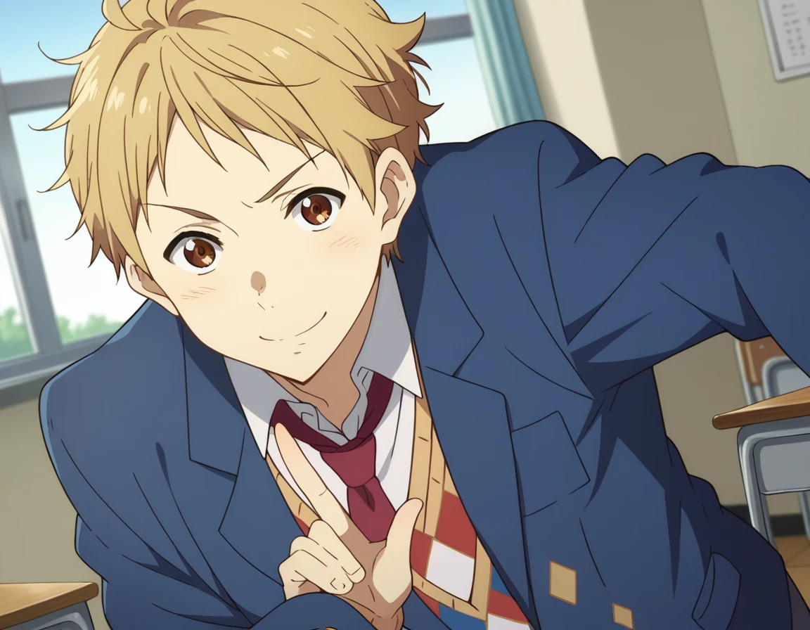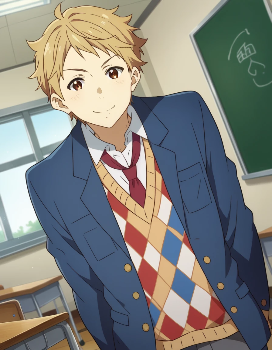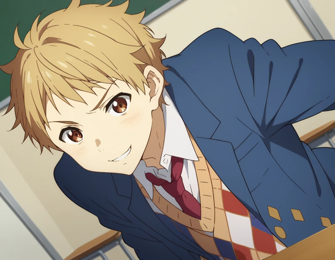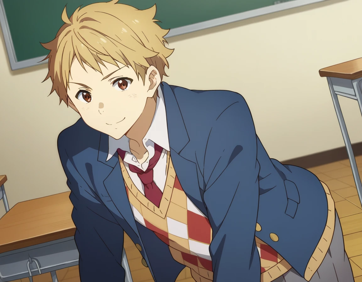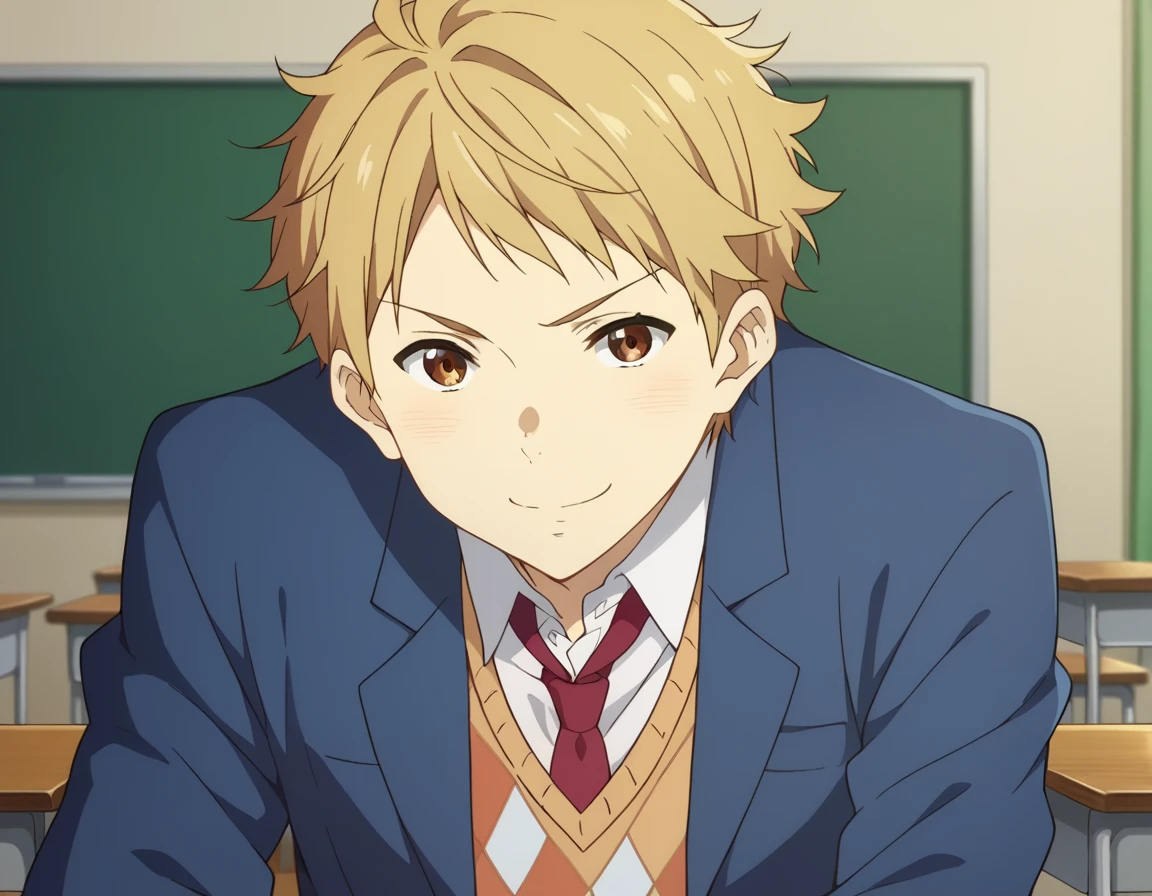 akihito kanbara, blonde hair, brown eyes, male focus,
