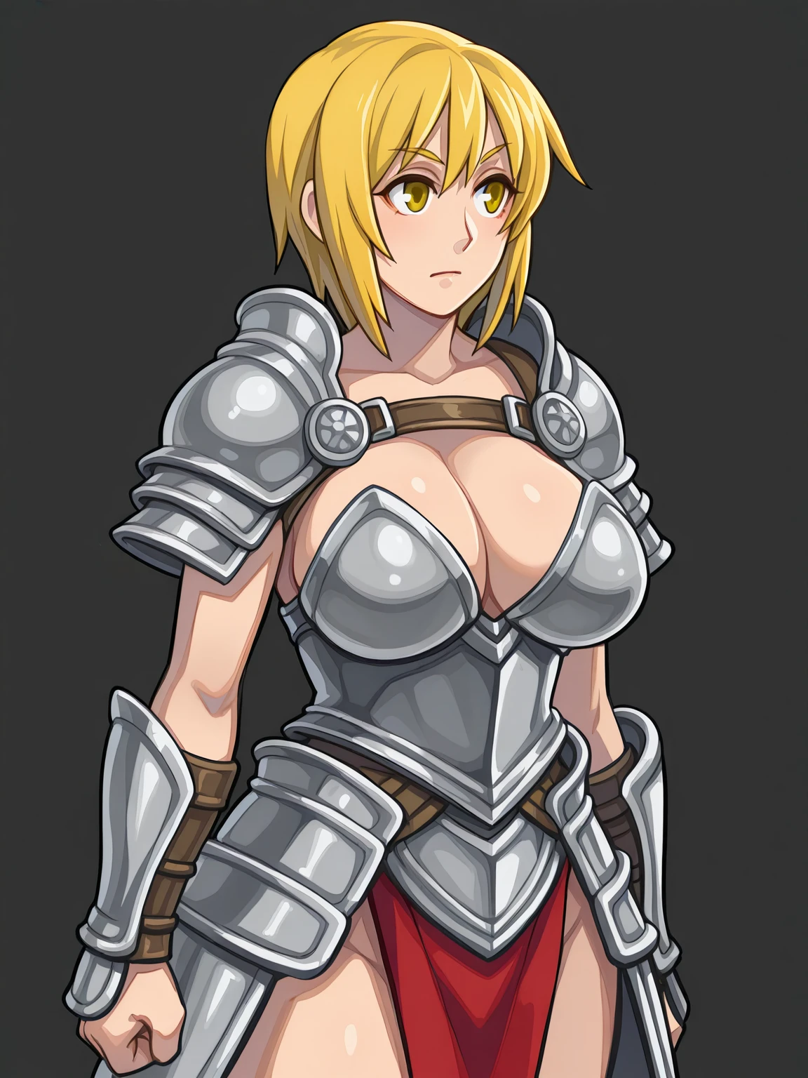 RPGMSoichi, simple background, upper body, 1girl, solo, breasts