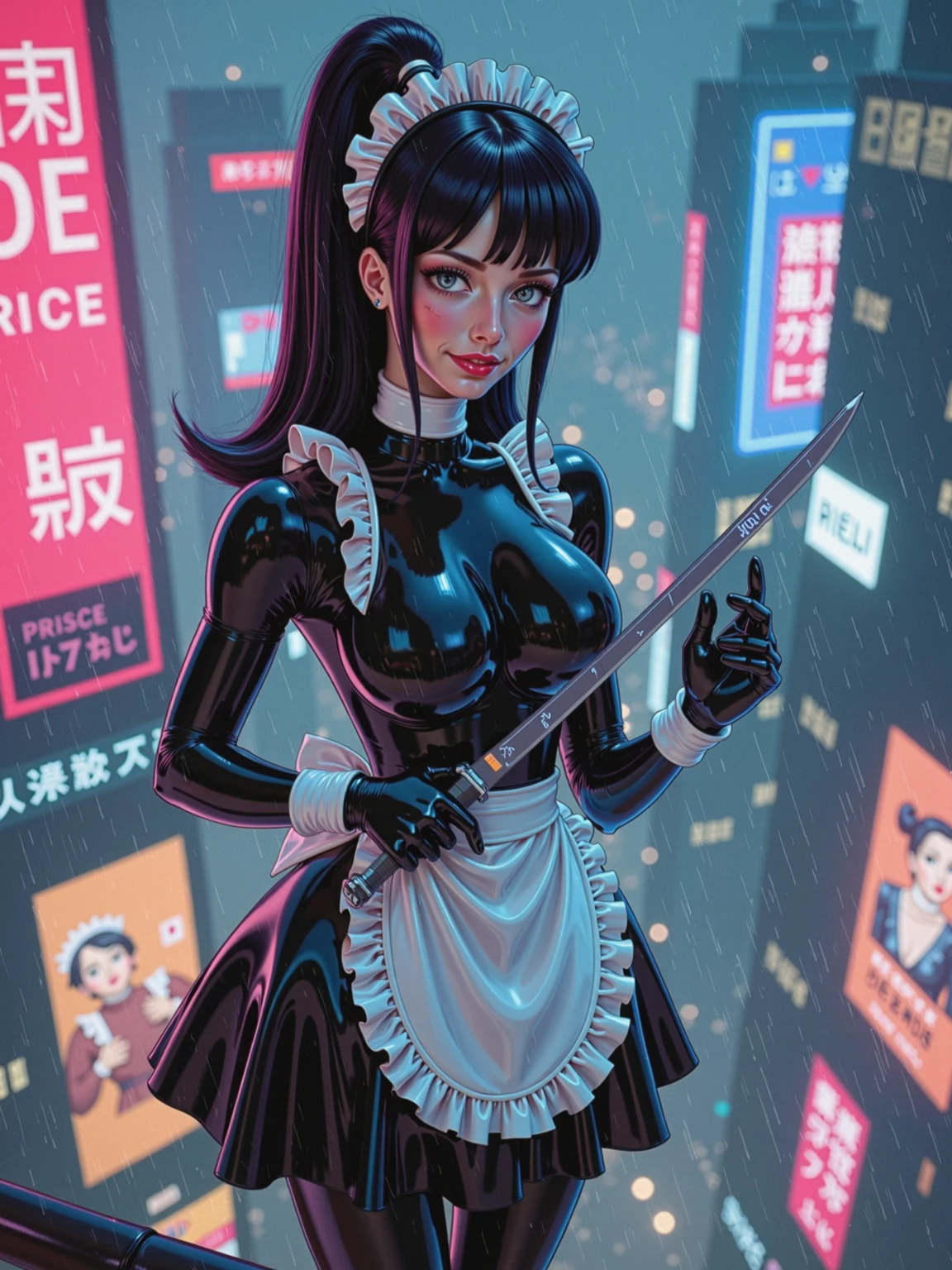 This LoRA brings the iconic French maid costume to life with a glossy latex twist. Whether you're designing stylish characters or adding a bit of shine to your scenes, this LoRA enhances your creations with a sleek, glossy look.