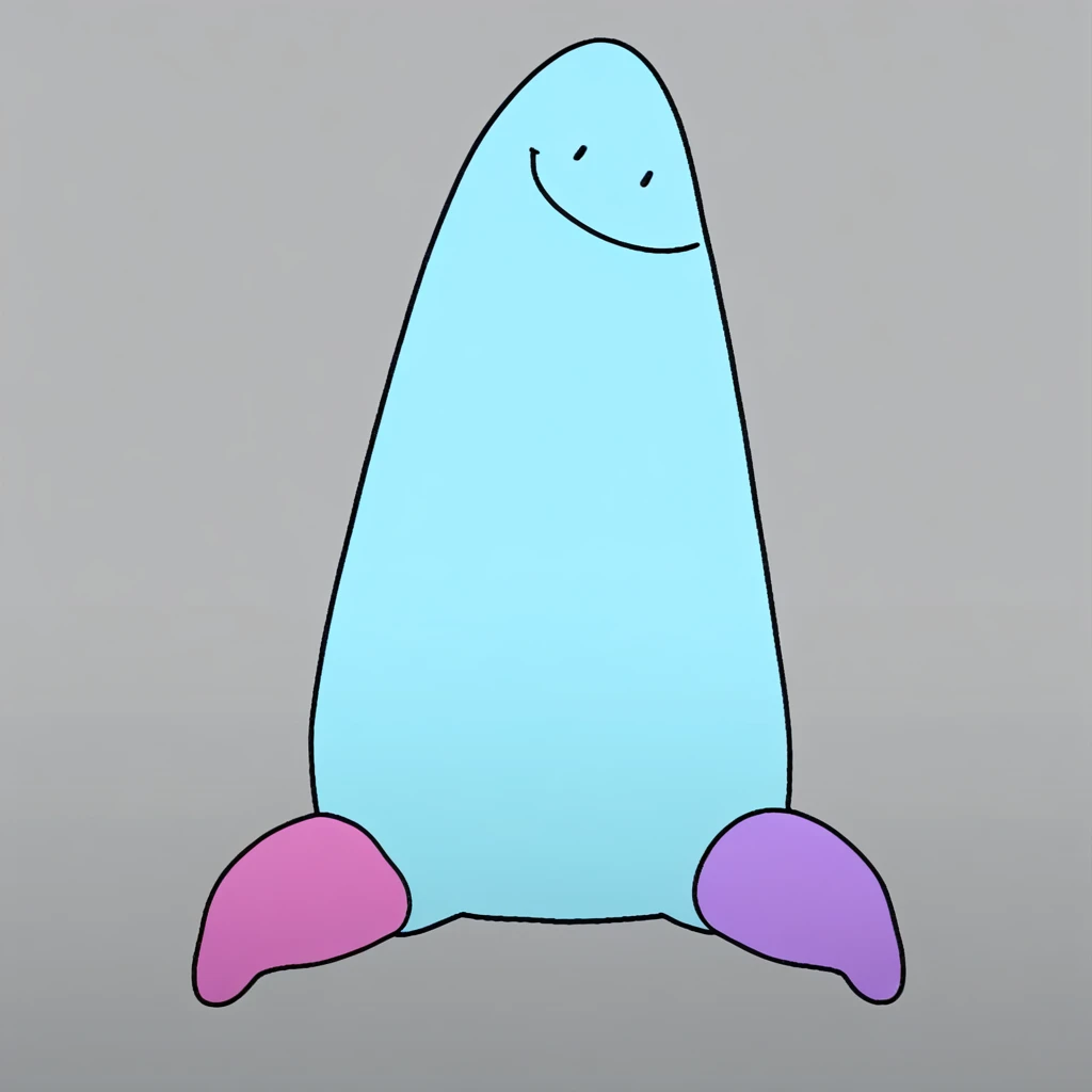 Boggo, female, no arms, blue body, pink left leg, purple right leg, colored body, blob body, simple face