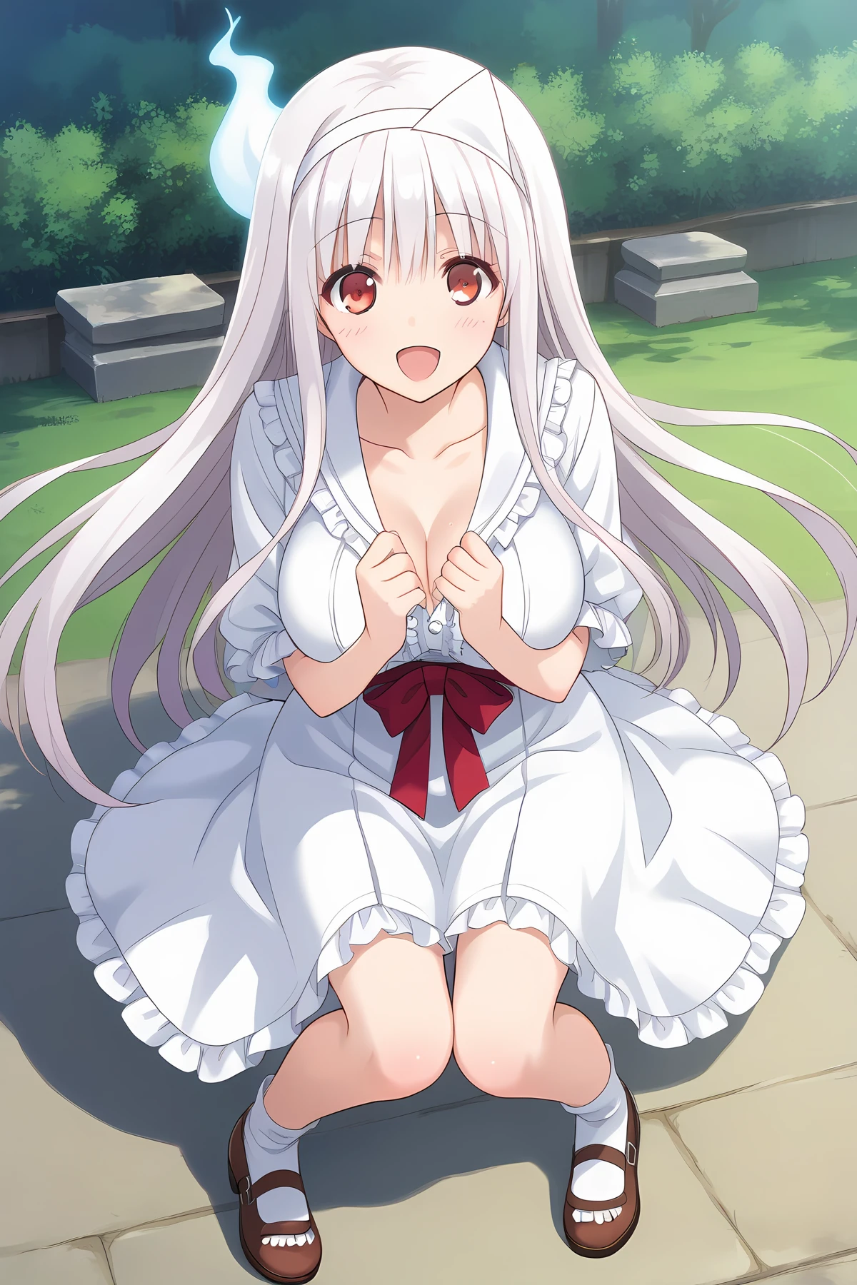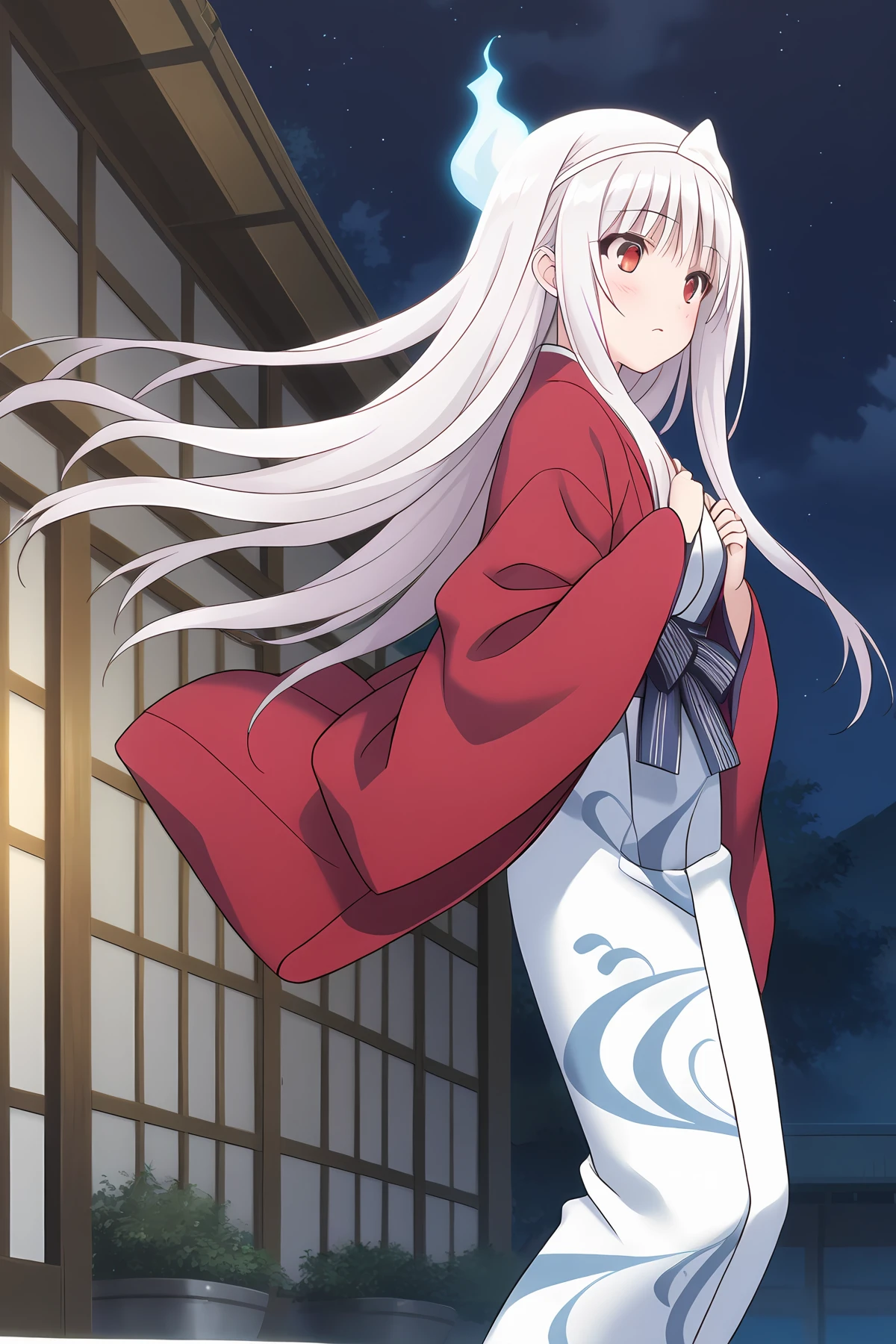 ys-yuuna, hitodama, ghost, triangular headpiece