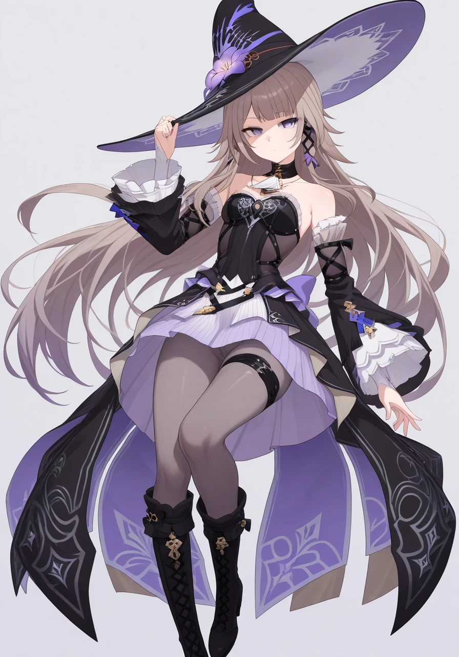 witch hat, pantyhose, uneven footwear, boots请按需调整权重和提示词。