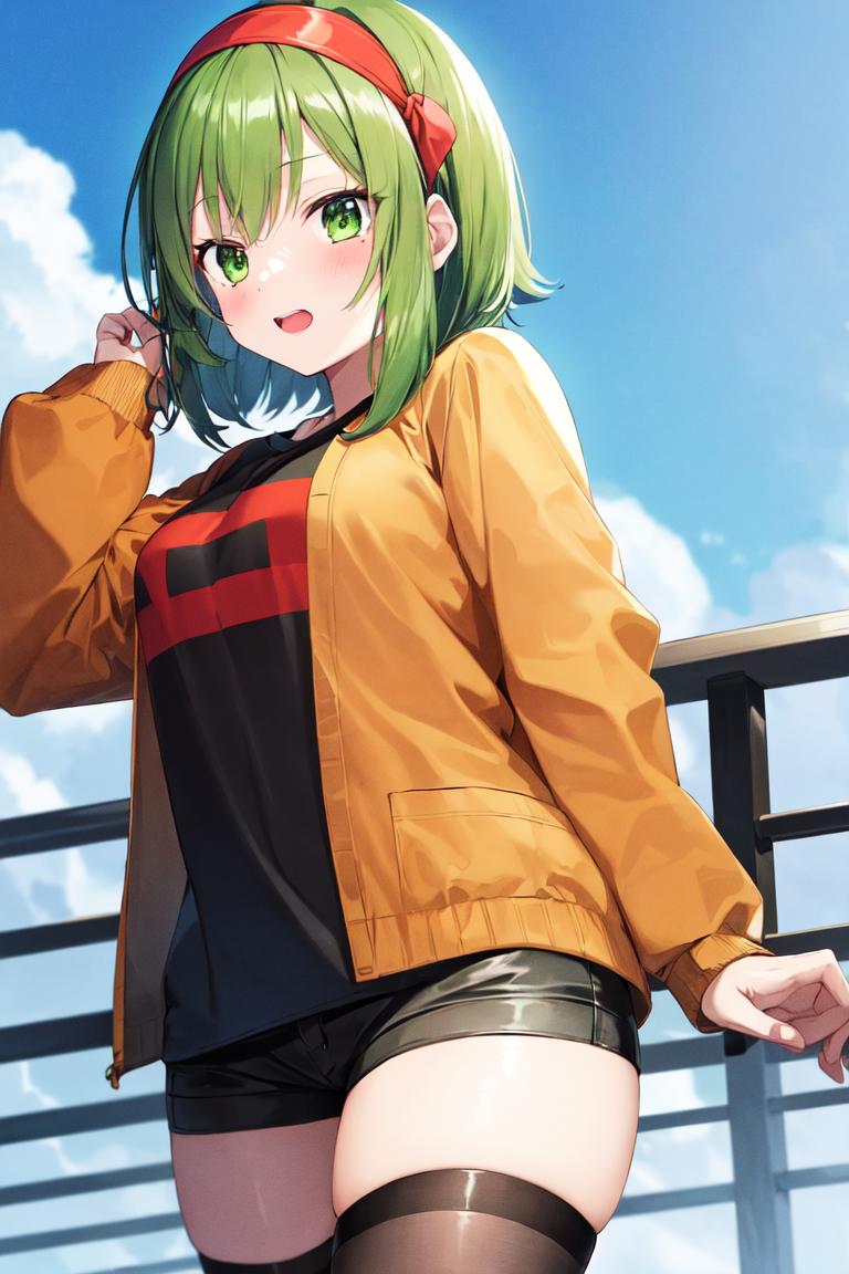 'Gumi' is enough to get the character but the other tag collection will give her her main outfit.