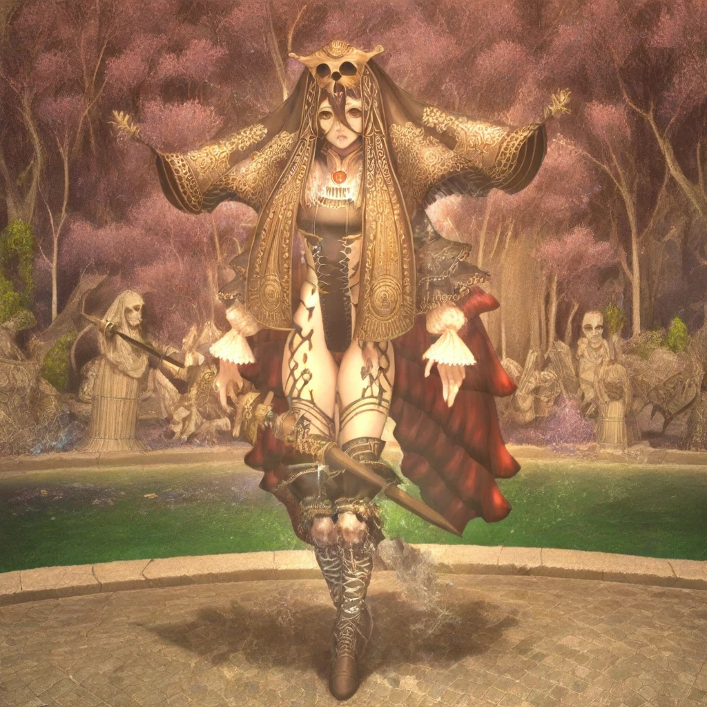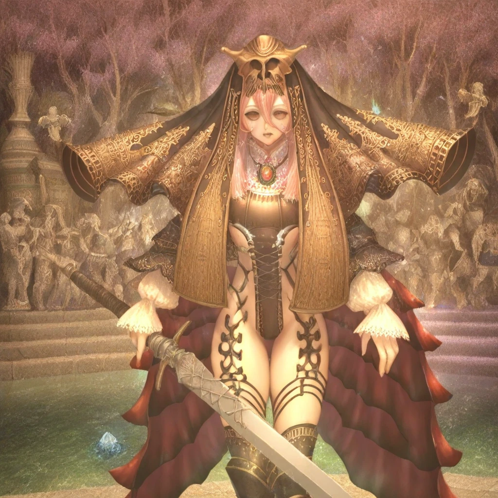 Genkou no Necromancer, black hood, black leotard, pink hair, long hair, large breated