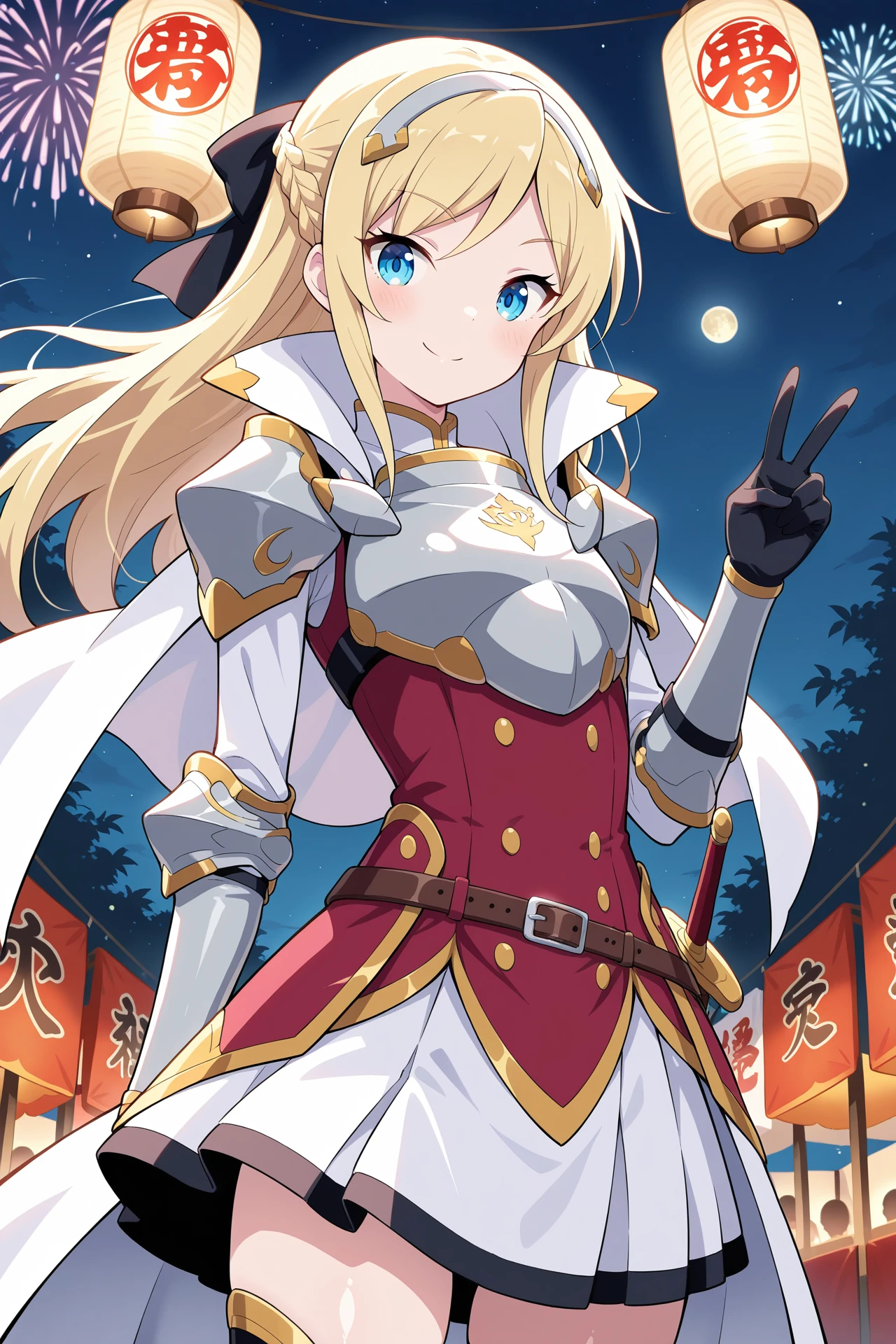 hildegard minas lestia, blonde hair, long hair, blue eyes, hair bow, black bow, hairband
