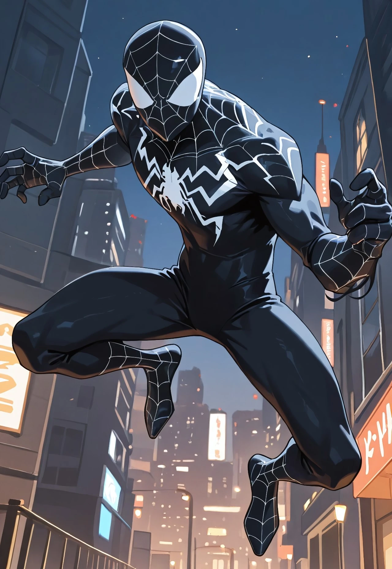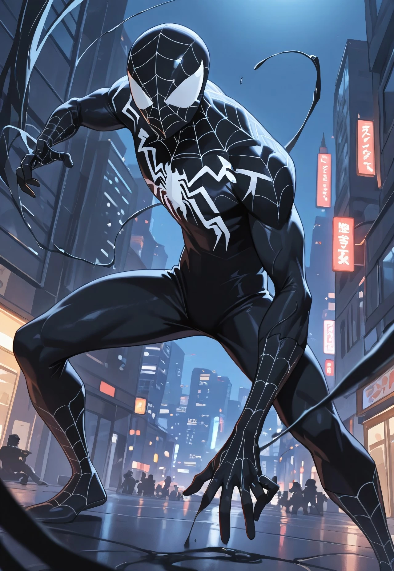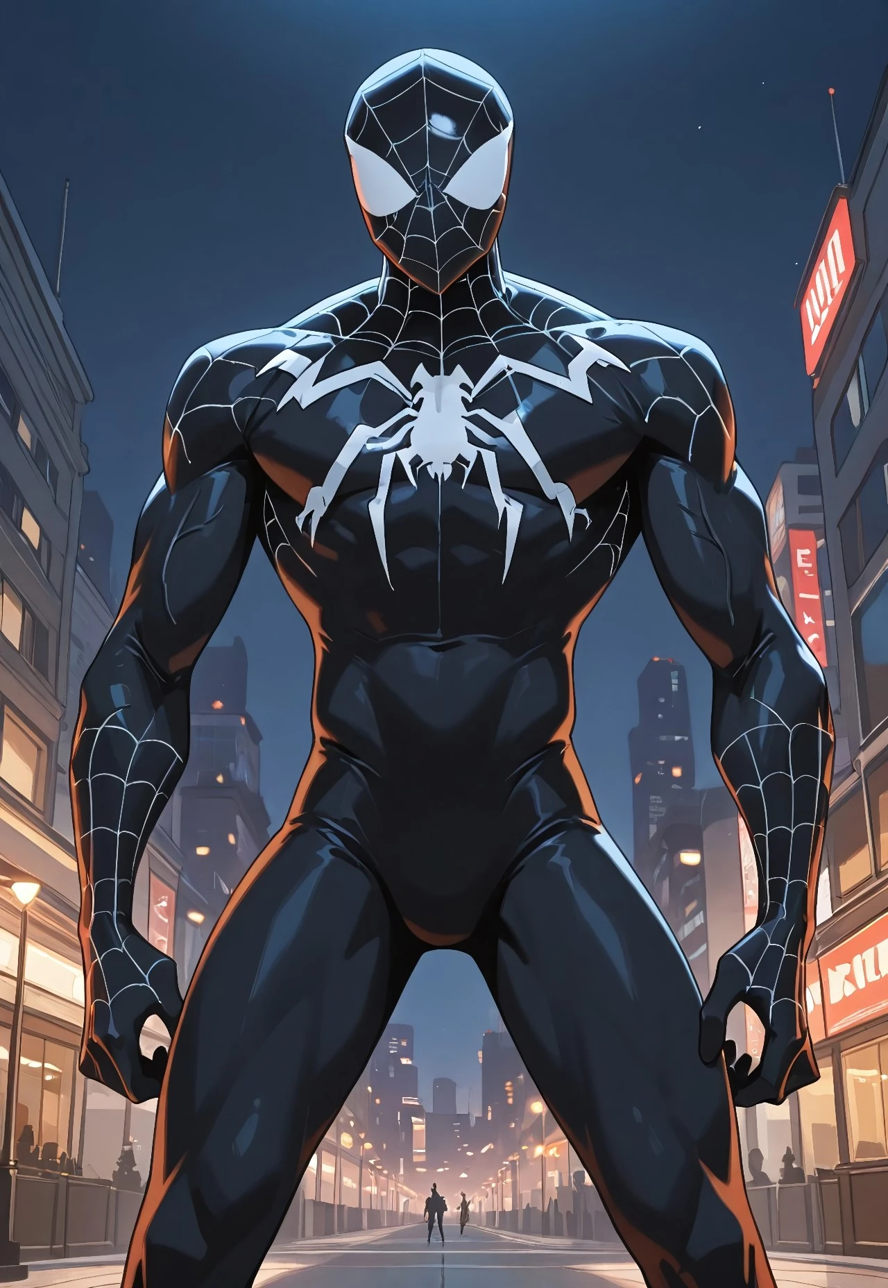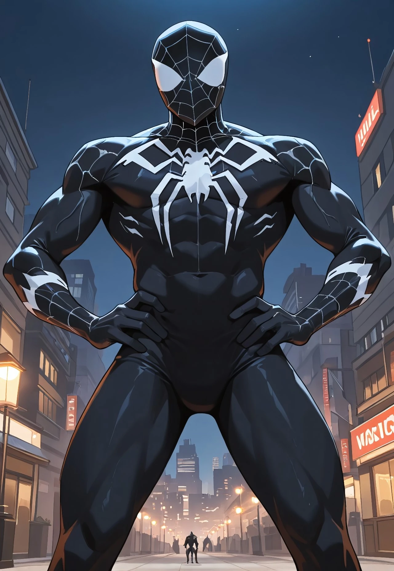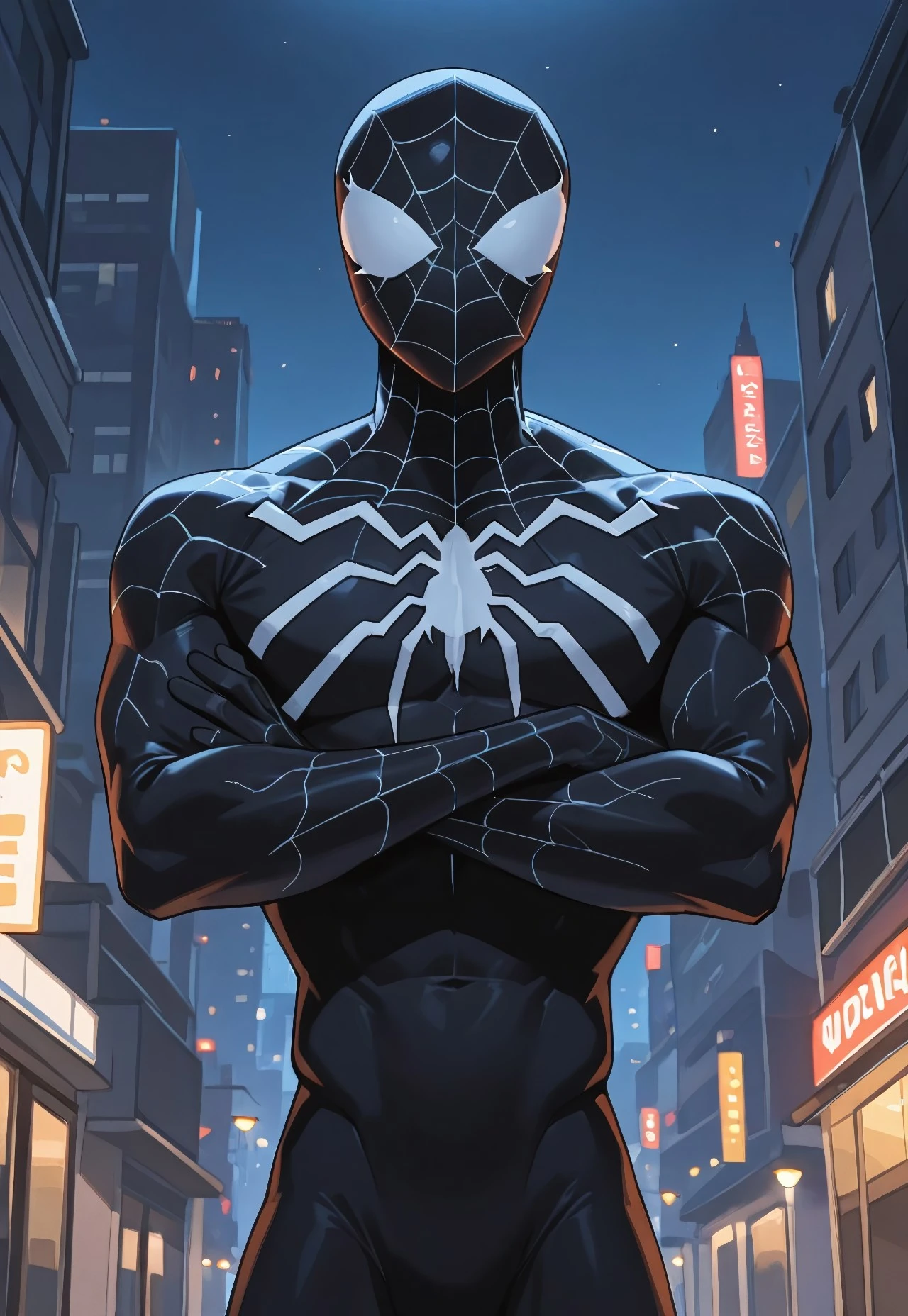 spectacular_symbiotespider_ep11(cartoon)IL, symbiote, black_, , 1boy, solo, spider print, muscular, mask,