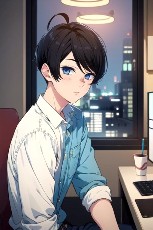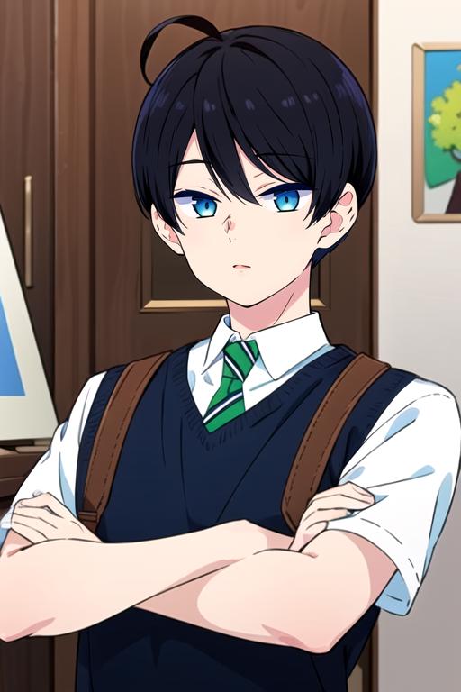 mikoto_yuzuki, black hair, blue eyes, short hair
