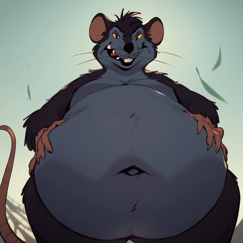 Tags: templeton the rat, rat, rat tail, dark grey fur, light grey belly, light grey snout, light grey hands, light grey inner ears, light grey feet, light grey tail, long tail, whiskers, small back nose, buck tooth, yellow sclera, hair tuft, male, chubby