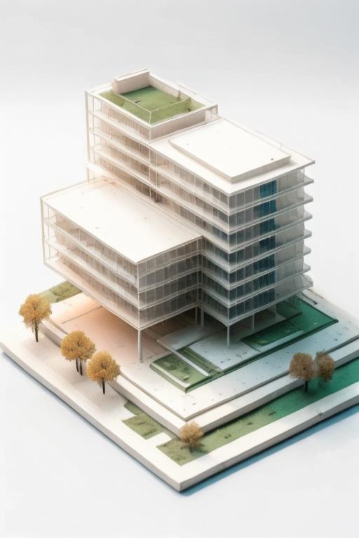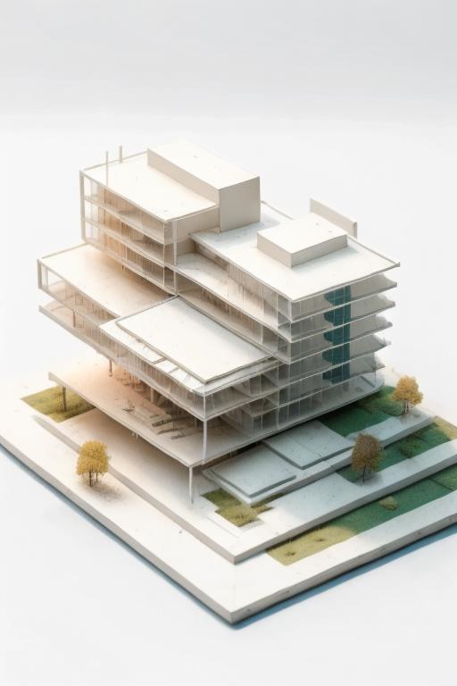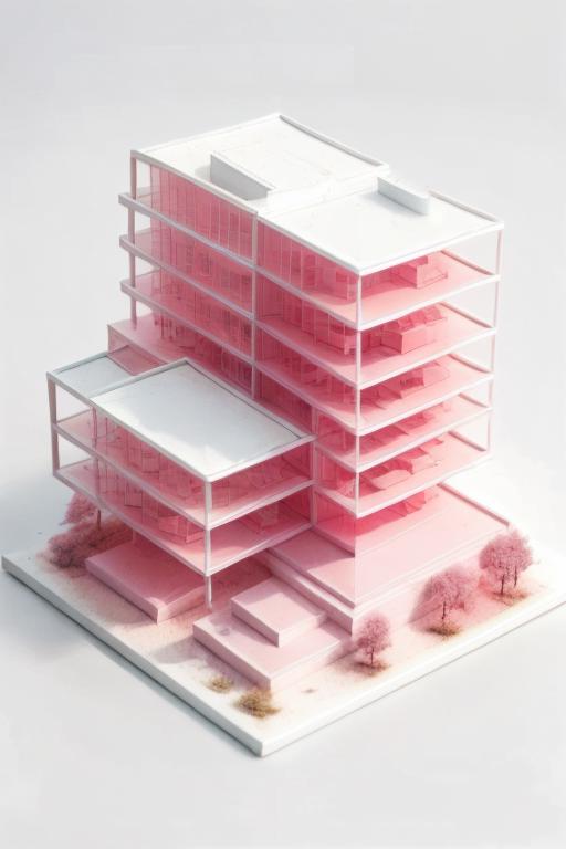 提示词:建筑模型, 白模,,粉色,蓝色,绿色,黄色.....
