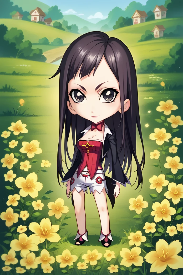 zhu_zhuqing, solo, (small breasts), black long hair, 1girl,sharp black eyes, sharp face,