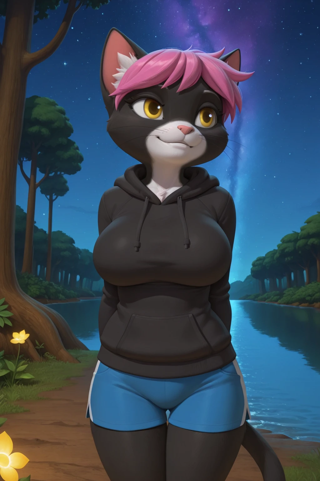 Mensajes de refuerzo: "domestic cat, female, yellow eyes, black fur, white body"